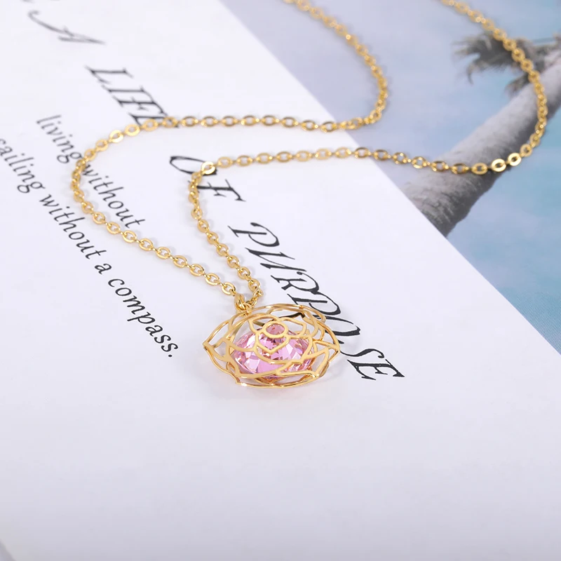 Роскошное ослепительное ожерелье с кулоном из Кубического циркония розы для женщин и девушек из нержавеющей стали Красавица и Чудовище Подружка невесты Gif
