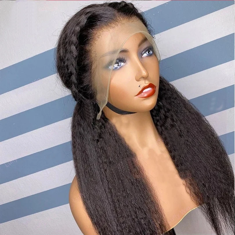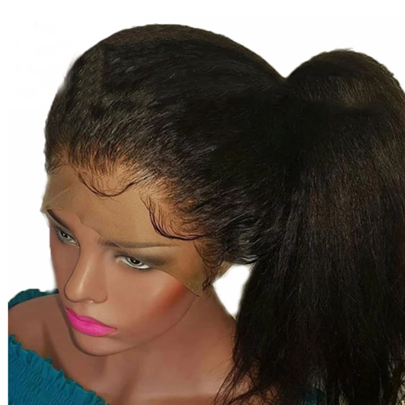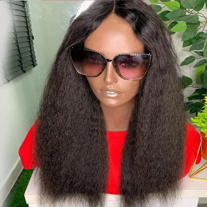 Натуральные черные прямые синтетические волосы Yaki средней части, парики из высокотемпературных волос для черных женщин, предварительно выщипанные