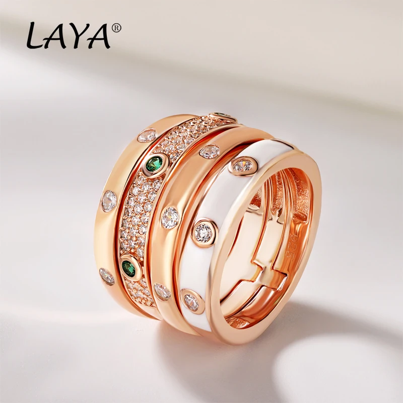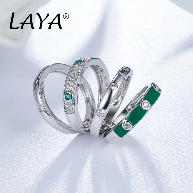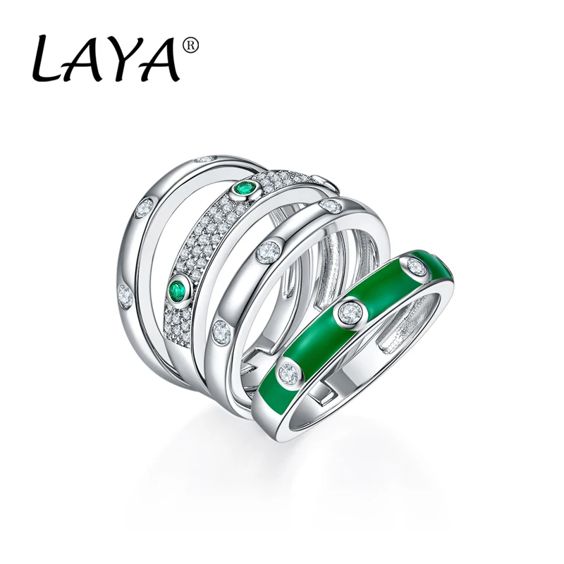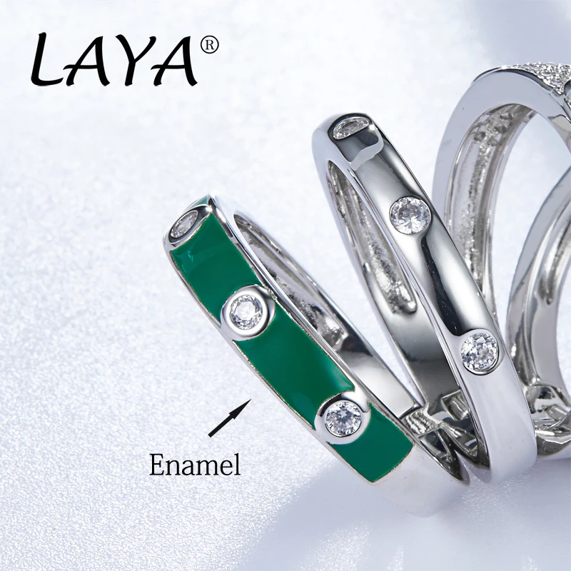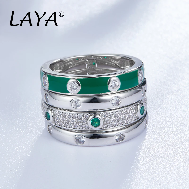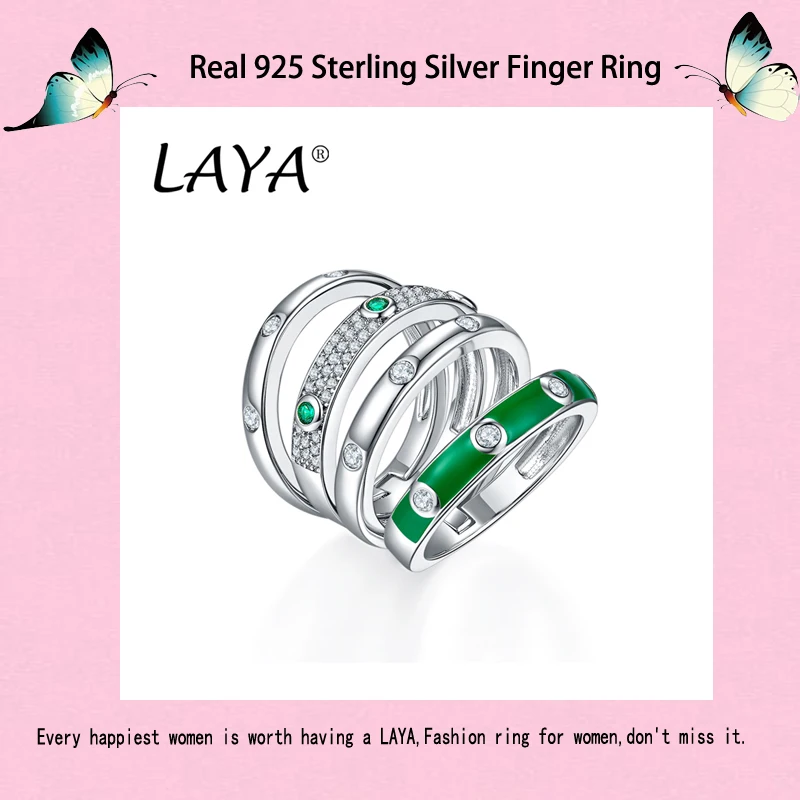 Laya 925 стерлингового серебра мода новый стиль многострочный преувеличенный дизайн высококачественное кольцо с зеленой эмалью из циркона для женской вечеринки персонализированный ювелирный подарок 2022 тренд