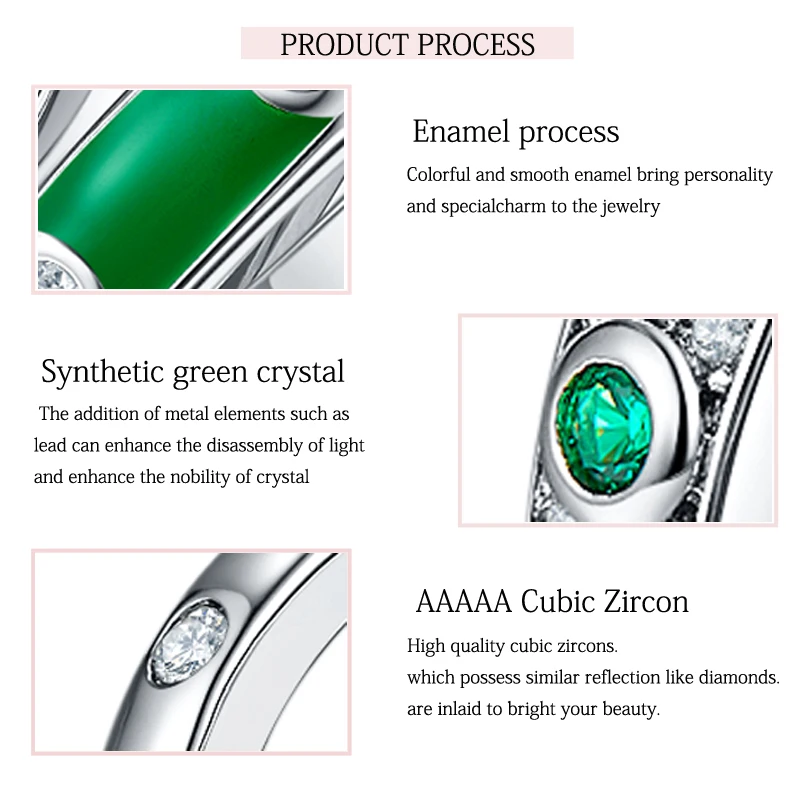Женское Обручальное кольцо из серебра 925 пробы с зеленой эмалью