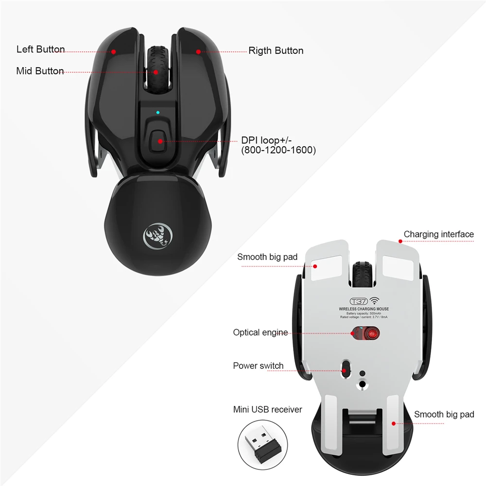 8. Металлический корпус, Высококачественная беспроводная мышь, стильная, легко носить с собой.