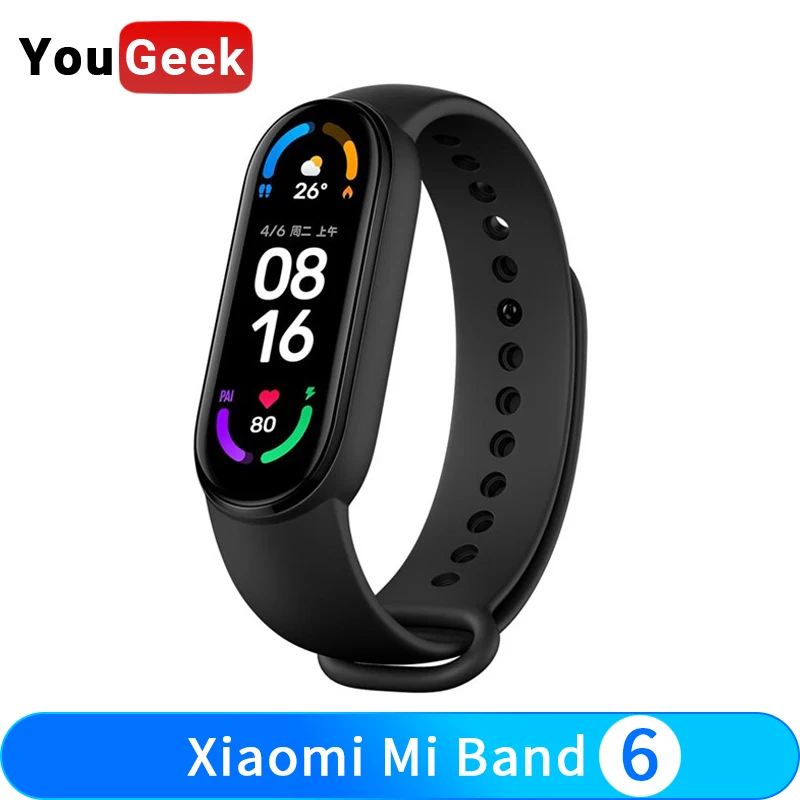Смарт-браслет Xiaomi Mi Band 6, фитнес трекер с AMOLED экраном, с функцией измерения пульса и уровня кислорода в крови, с поддержкой Bluetooth, водонепроницаемый, 5 цветов