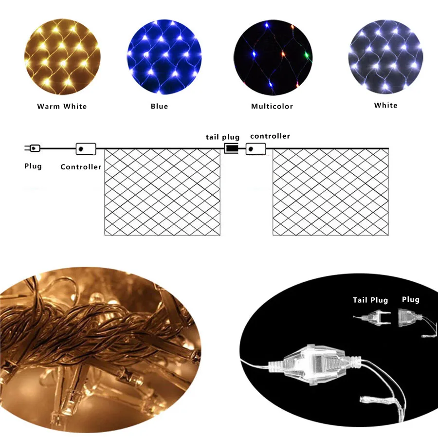 1 хСветодиодный ная сетчатая сказочная гирлянда, 8 моделей, Мерцающая сетчатая гирлянда, лампа для фестиваля, вечеринки, Рождественского украшения, пейзажа, уличного сказосветильник