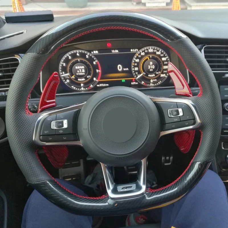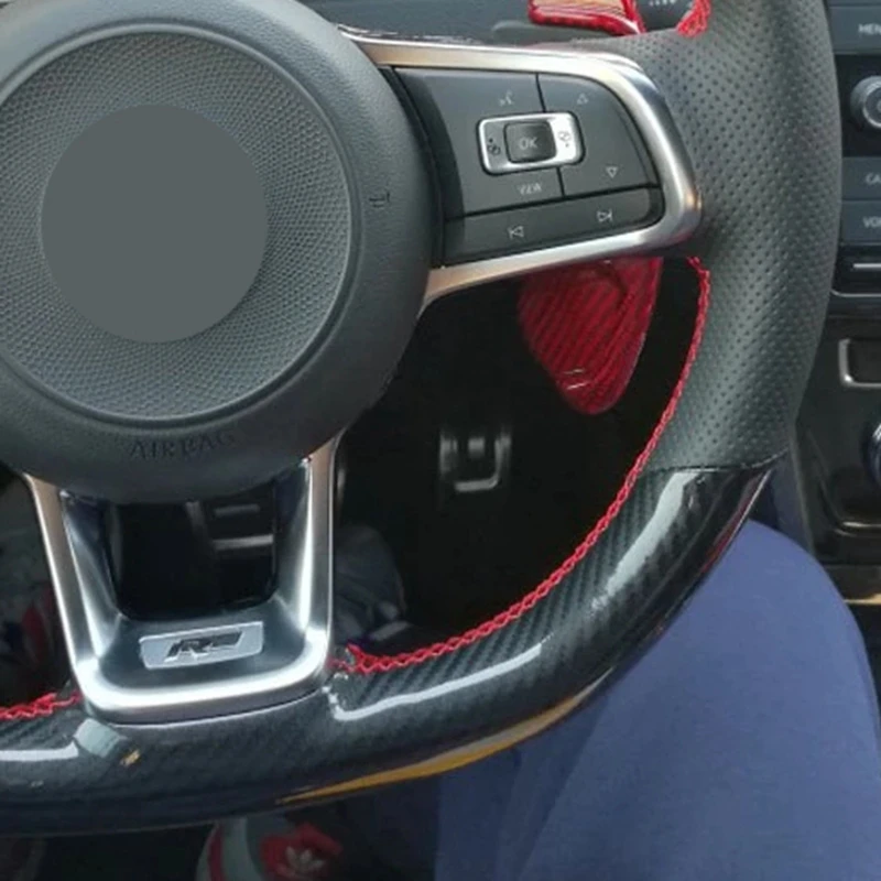 Рука сшитый Черный углеродного волокна Черная замша Чехлы рулевого колеса автомобиля для Volkswagen Golf 7 GTI Golf R MK7 VW Polo GTI
