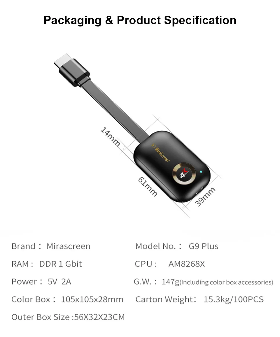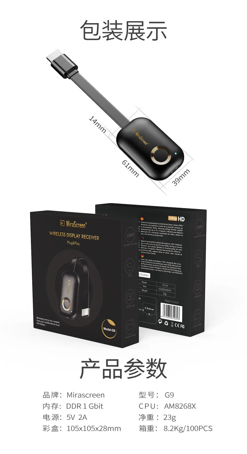 Mirascreen G9 Plus 2,4G5G 4K Miracast Wifi для DLNA AirPlay HD TV S...