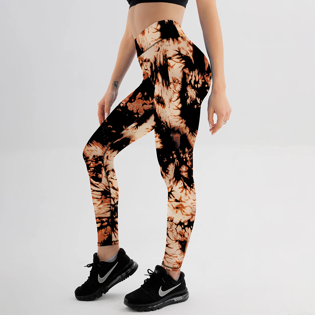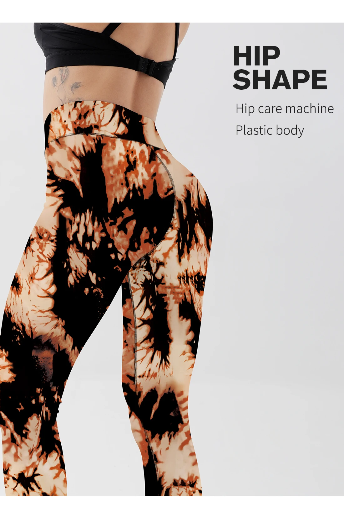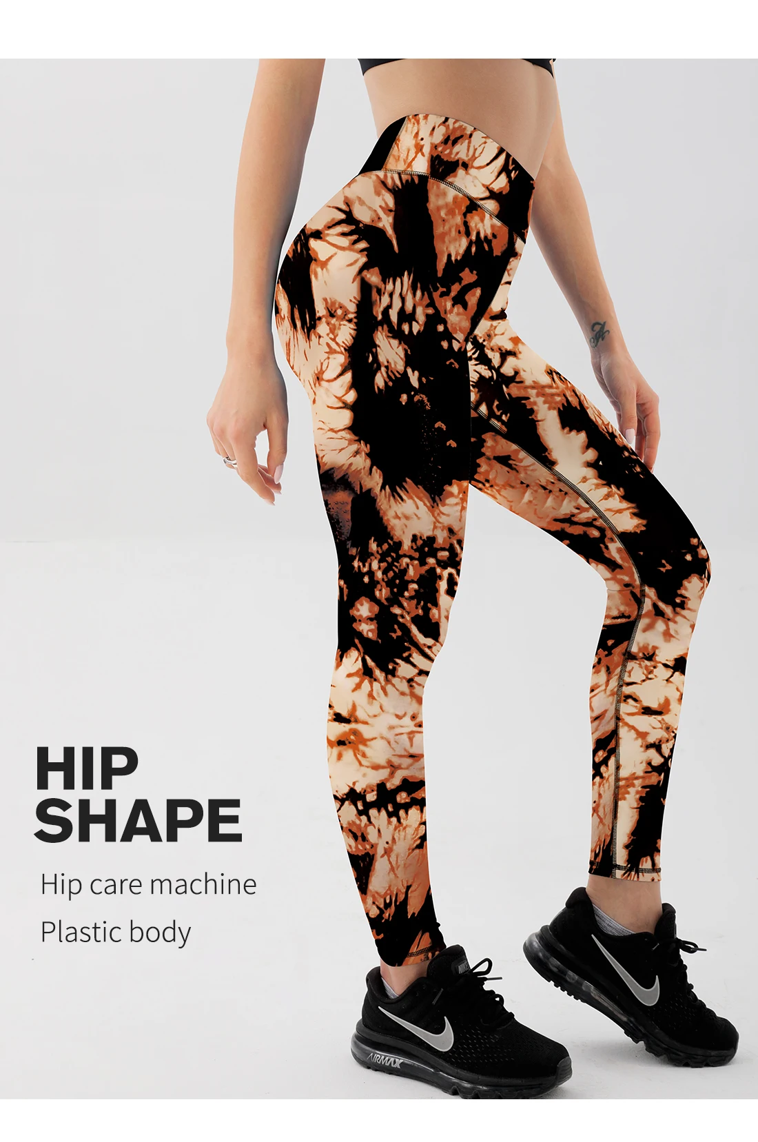 Леггинсы женские, с высокой талией, пуш-ап, закат, чернила, женские...