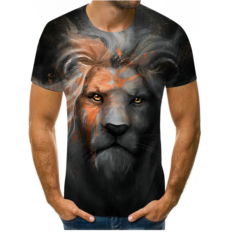 Мужская футболка с принтом короля льва и тигра, рубашка с коротким рукавом, уличный тренд, лето 2021