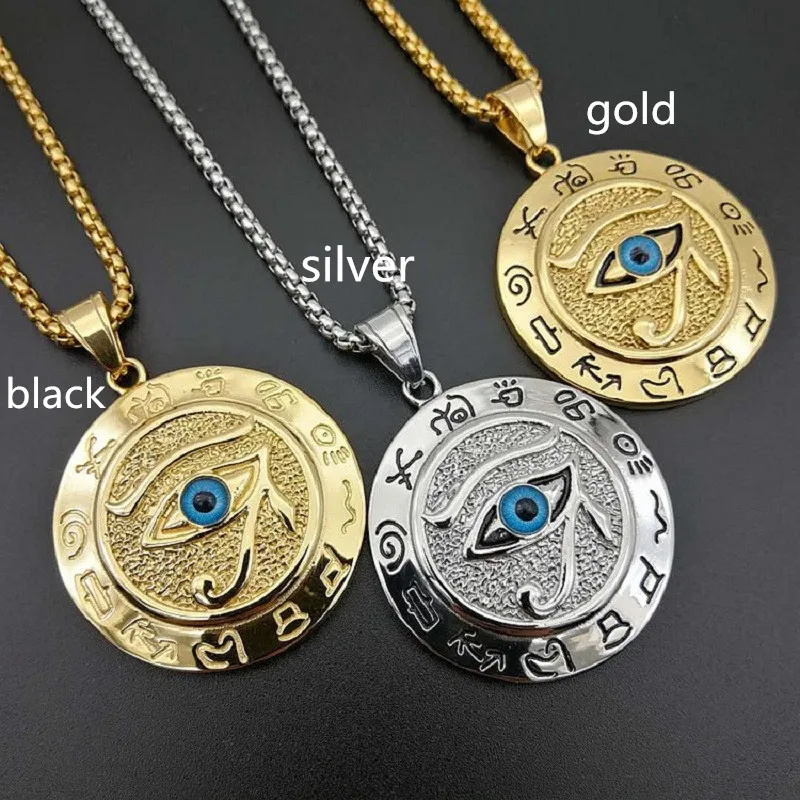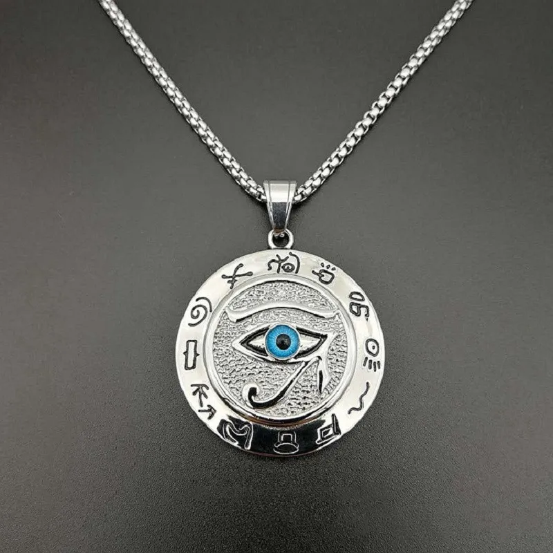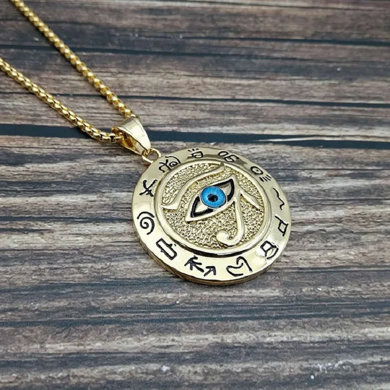 Ожерелье с круглой подвеской с узором глаза Хора в мусульманском стиле, мужское ожерелье, скользящая подвеска, металлическое ожерелье, амулет, аксессуары, ювелирные изделия