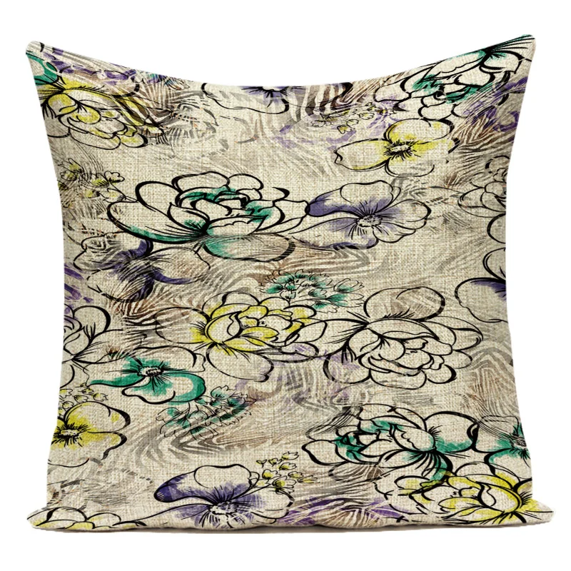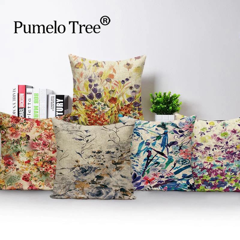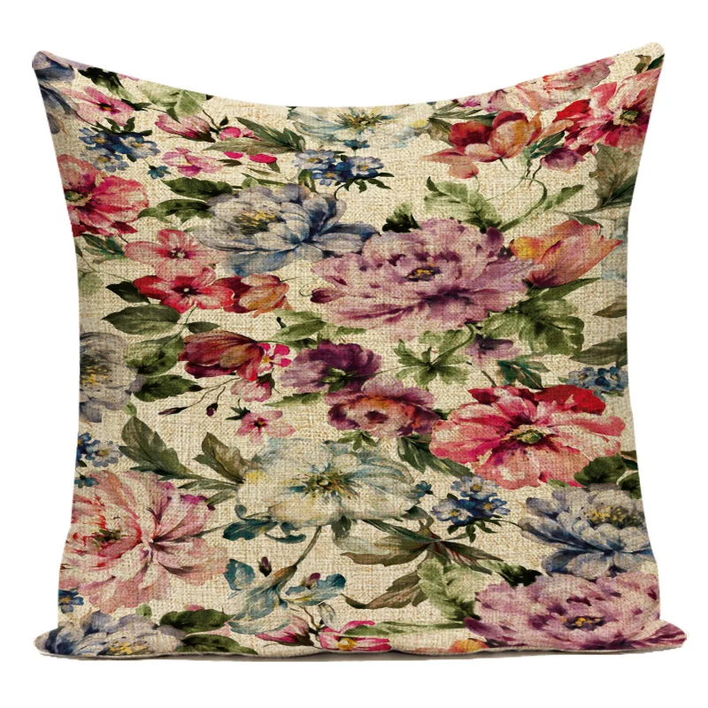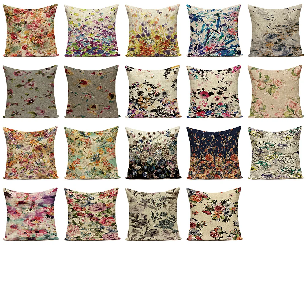 Новинка 2021, Цветные подушки с цветами, чехлы, винтажная декоративная льняная наволочка, домашний декор, современный 45x45 см, наволочка, наволочки
