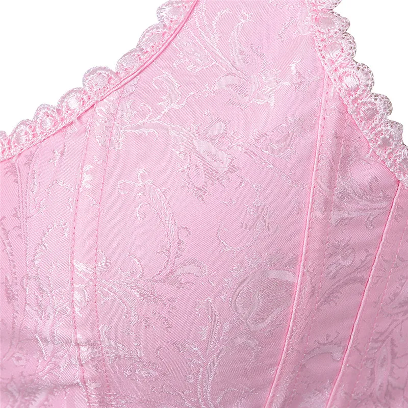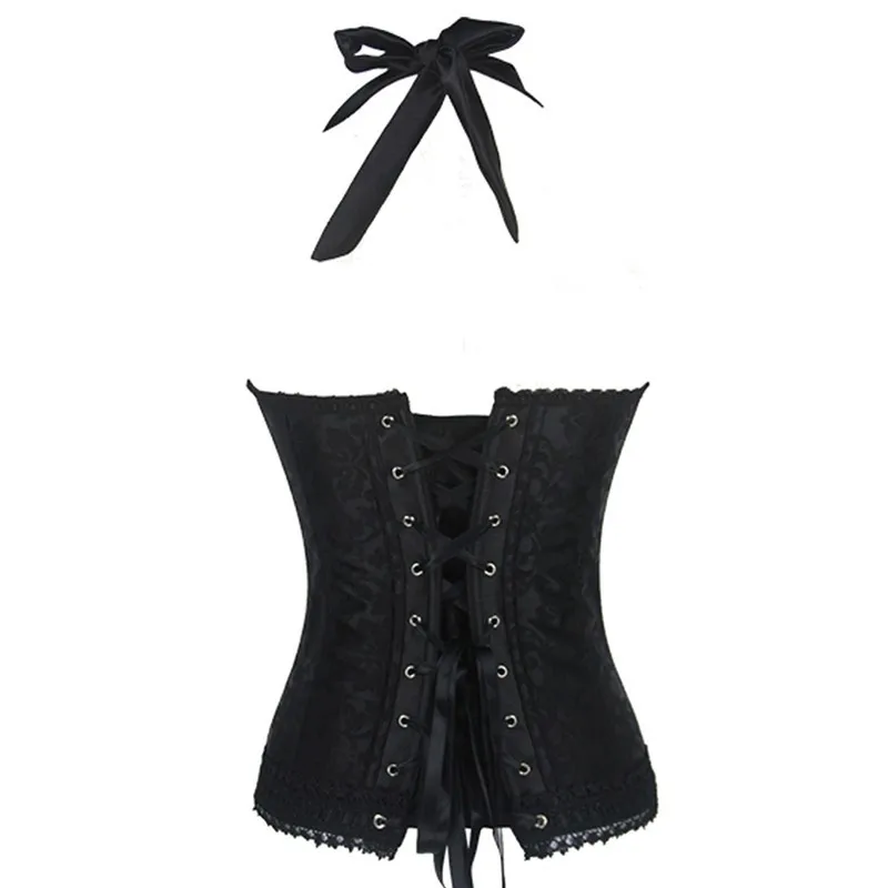 Черныйкрасныйрозовый пояс для похудения тела Корректирующее белье Для женщин парча на шнуровке с лямкой на шее Корсет Бюстье с застежкой-молнией Overbust Корсеты размера плюс