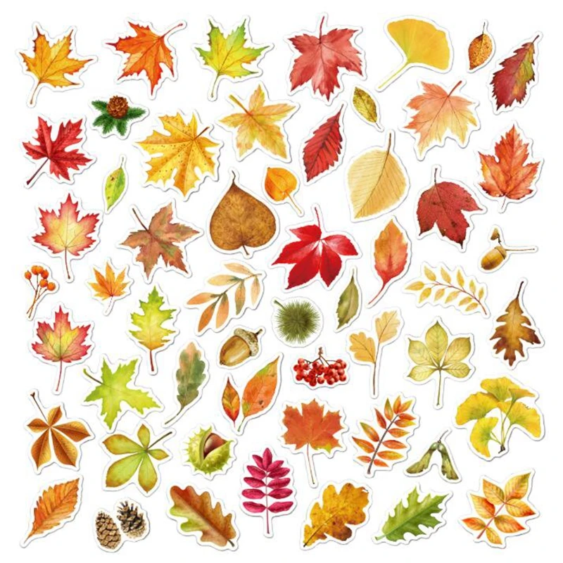55 шт с осенними листьями Декор Art Наклейки планировщик для скрапбукинга "сделай сам" из сухого клея пуля журнал кленовых листьев гинкго наклейки-граффити