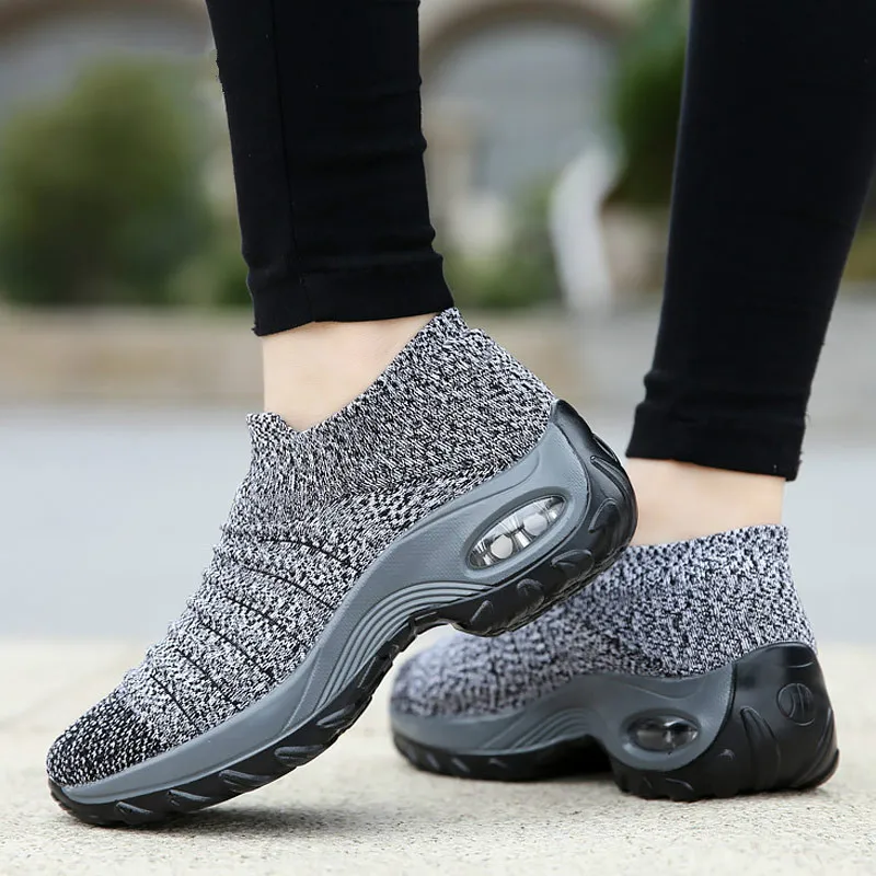 Женские кроссовки 2022, сетчатые сникерсы с воздушной подушкой, без шнуровки, вязаные носки, женские кроссовки, уличная одежда, мягкая женская обувь