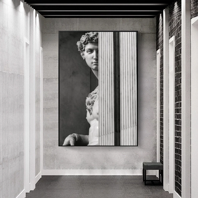 Скульптура Микеланджело художественные плакаты и принты, Современная черно-белая статуя Давида, художественные картины, украшение для дома, гостиной