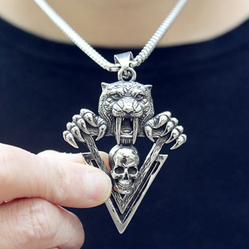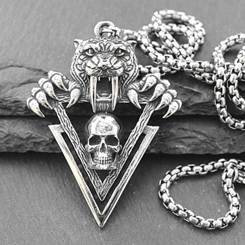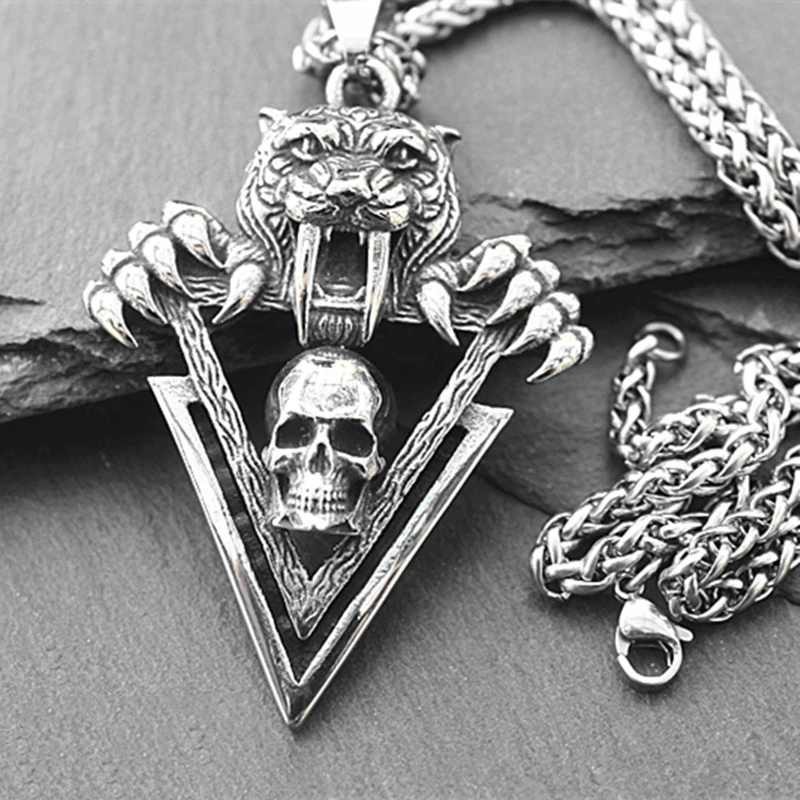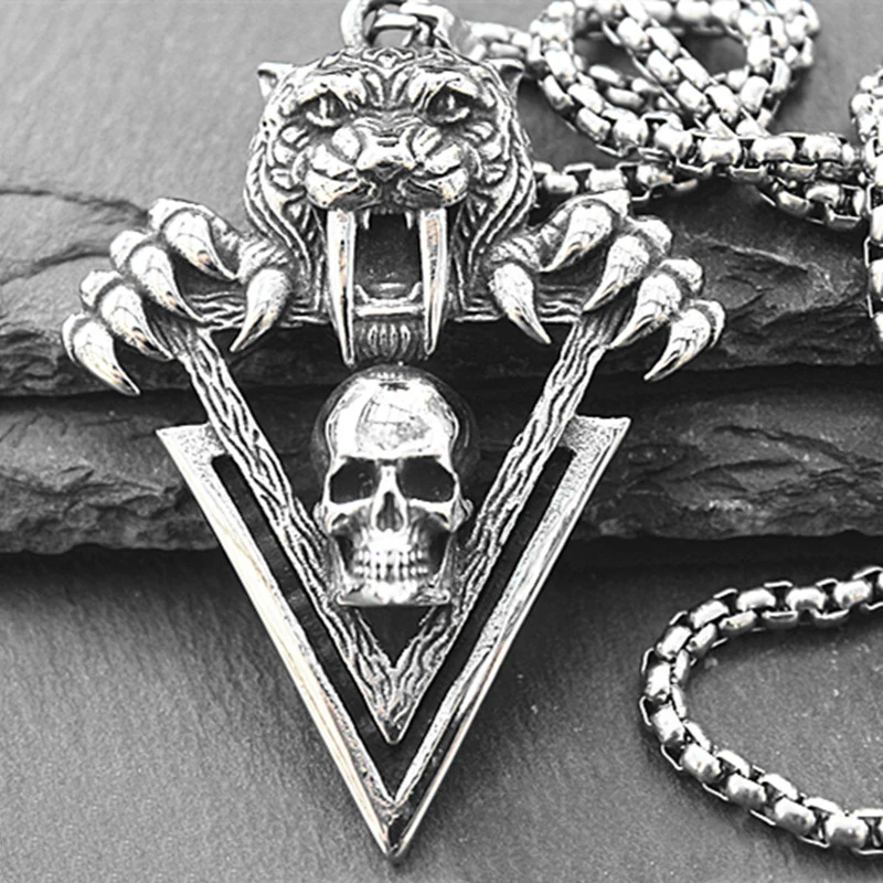 Ожерелье мужское из нержавеющей стали, в стиле панк, тигровый зуб, череп