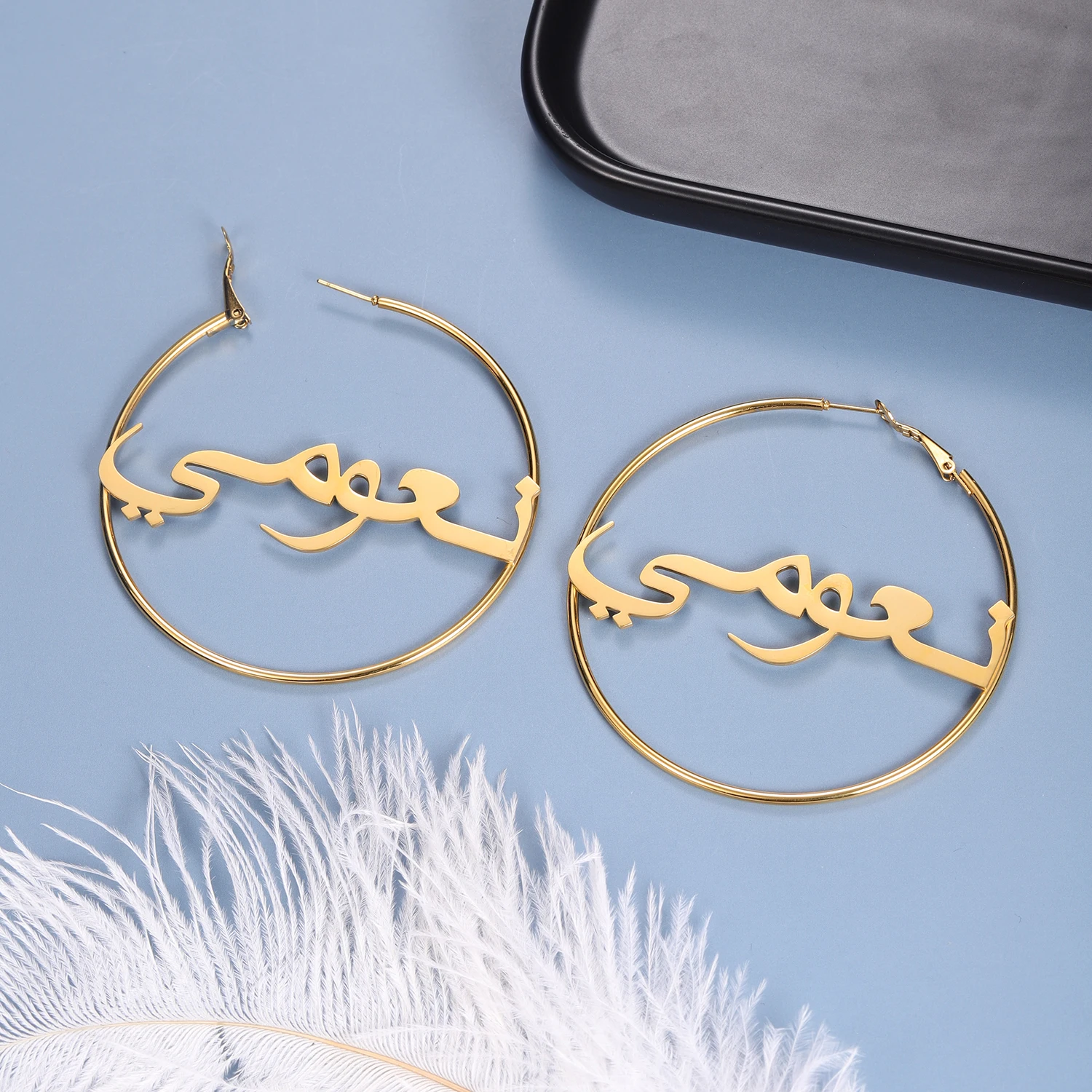 Женские серьги-кольца из нержавеющей стали, с арабским именем