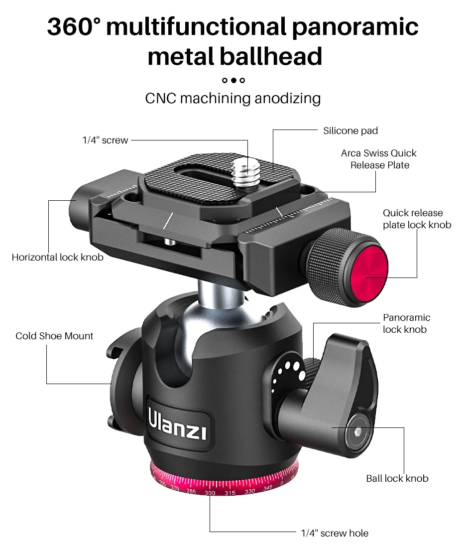 Ulanzi MT-21 DSLR Камера штатив-тренога из углеволокна Выдвижная легкий Arca Swiss штатив монопод с 360 панорамная шаровая Головка