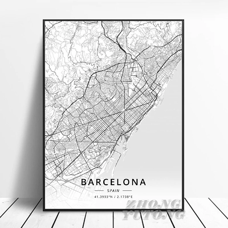 Плакаты с картой испанского города, Барселона, Мадрид, Малага, Севи...