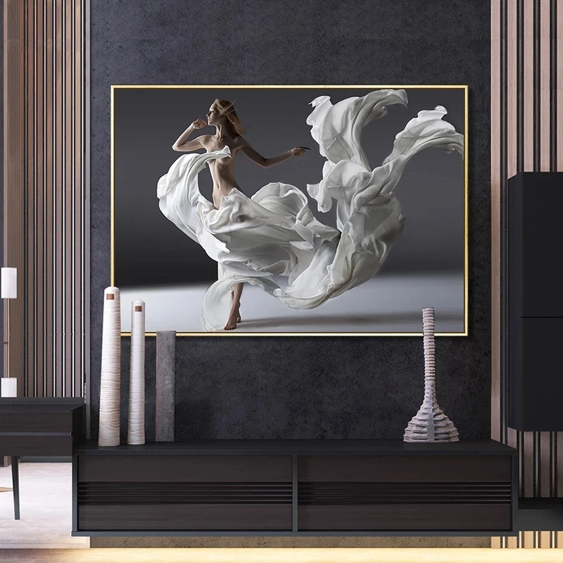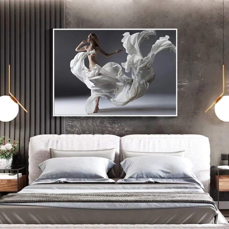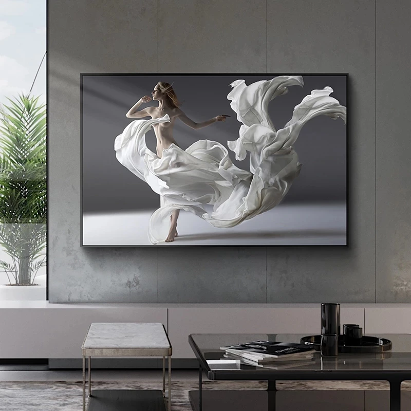 Белая шелковая фоновая Картина на холсте с обнаженной девушкой, современная популярная картина на стену, домашнее украшение для гостиной, роспись (без рамки)