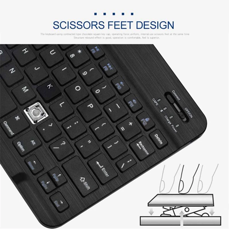 Внешний вид специально разработан для вашего iPad. Система предназначена для Windows,Android,IOSСветильник, бесшумные нажатия клавиш, защита от пылиКлавиатура Ножничного типа, быстрый ввод текста, хорошее ощущение.Микроинтерфейс, легко заряжается. Зарядка около 2 часов. Встроенный литиевый аккумулятор 110 мА, длительное использование более 40 часов.