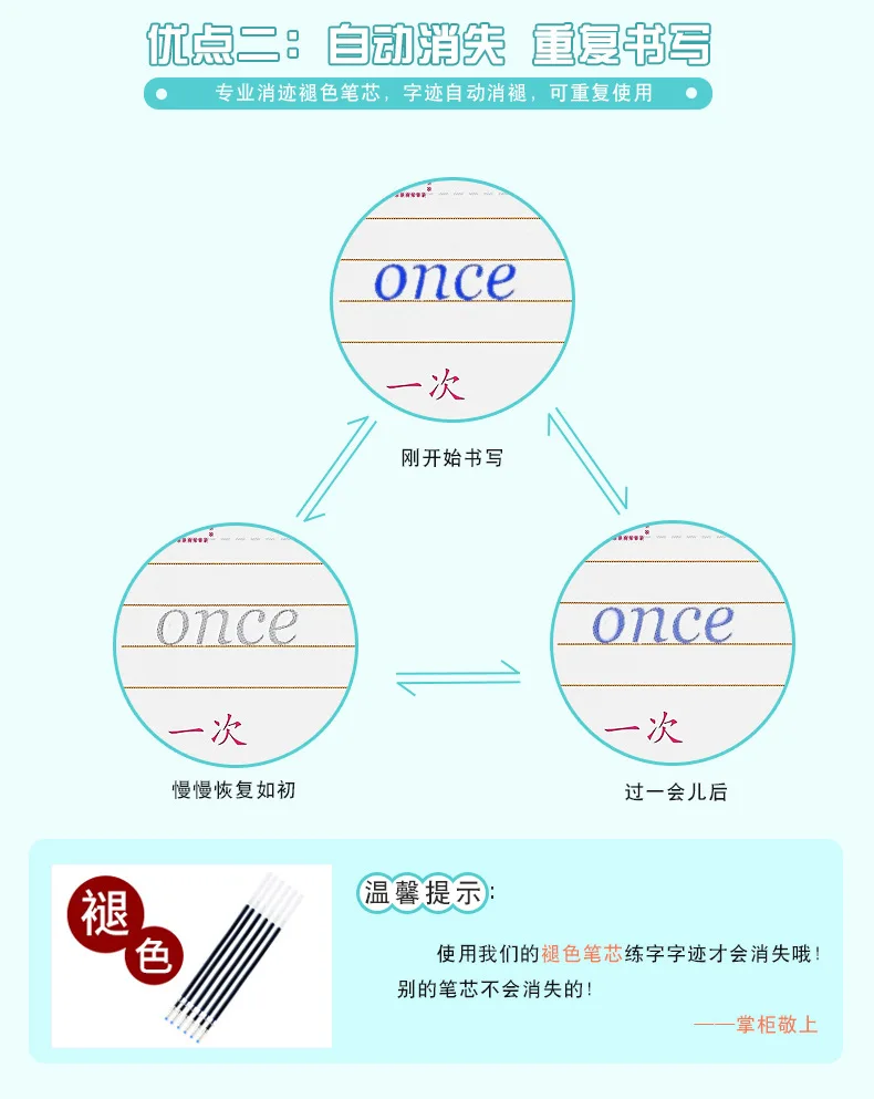 Виды: Каллиграфия Подходящий возраст: 3-6 лет Размер: 185 мм * 260 мм Особенности: многократное использование, паз копирайтер Материал: белый картон Подарки: ручка * 1, заправка * 6, держатель ручки * 1 Применение: просвещение образование и выгодно отличается от обычных однотонных вещей Подходит для подарка: День рождения Мы использовали волшебные ручки для письма. После написания на некоторое время, шрифт исчезнет и вернется к исходной форме, которая может быть использована повторно. Примечание: возможны отклонения в размере от 1 до 3 мм из-за ручного измерения! Спасибо! Реальный цвет может немного отличаться от цвета на фотографии в связи с настройками разрешения, яркости, контрастности экрана компьютера и т. д. Если у вас есть какие-либо вопросы, пожалуйста, свяжитесь с нами, прежде чем оставить отрицательный отзывы, мы постараемся сделать все возможное, чтобы служить вам, спасибо за понимание! Надеюсь, у вас есть хорошие покупки!