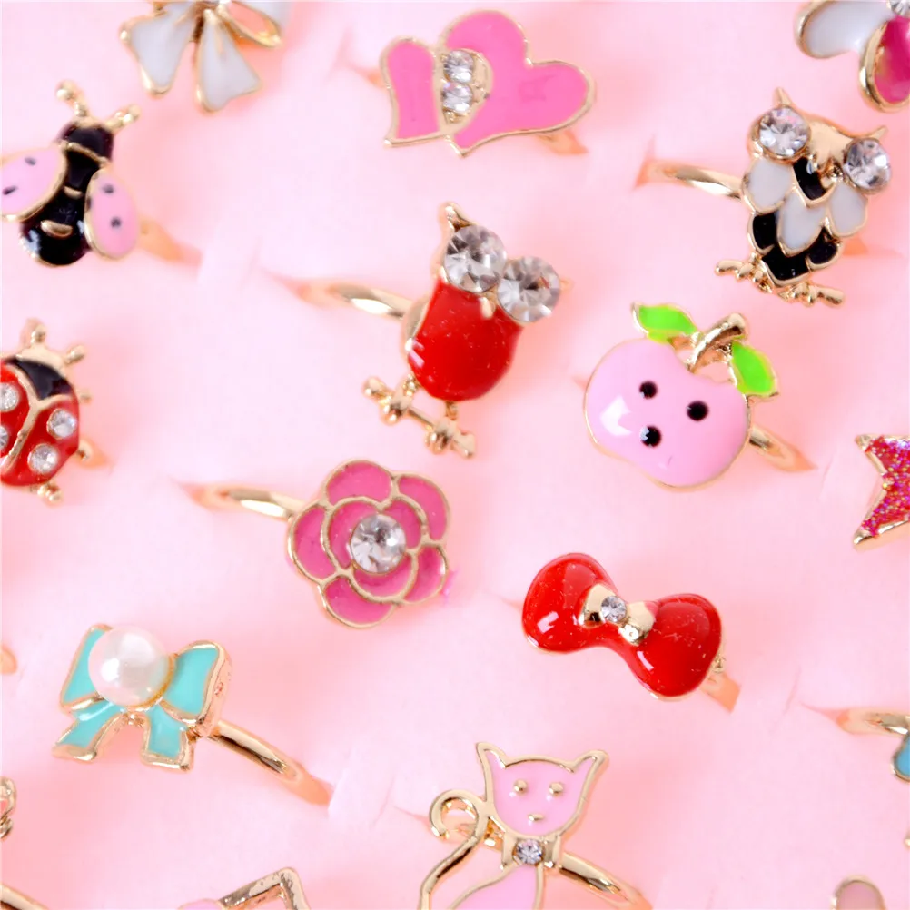 Детский милый костюм с рисунком героев из мультфильмов кошки с цветочным принтом для девочек, с завязками на бант, Луна, Звезды в форме сердца, собаки, кролика, кольца с настоящими австрийскими кристаллами, ювелирное изделие, подарок 2 шт., без выбора Стиль