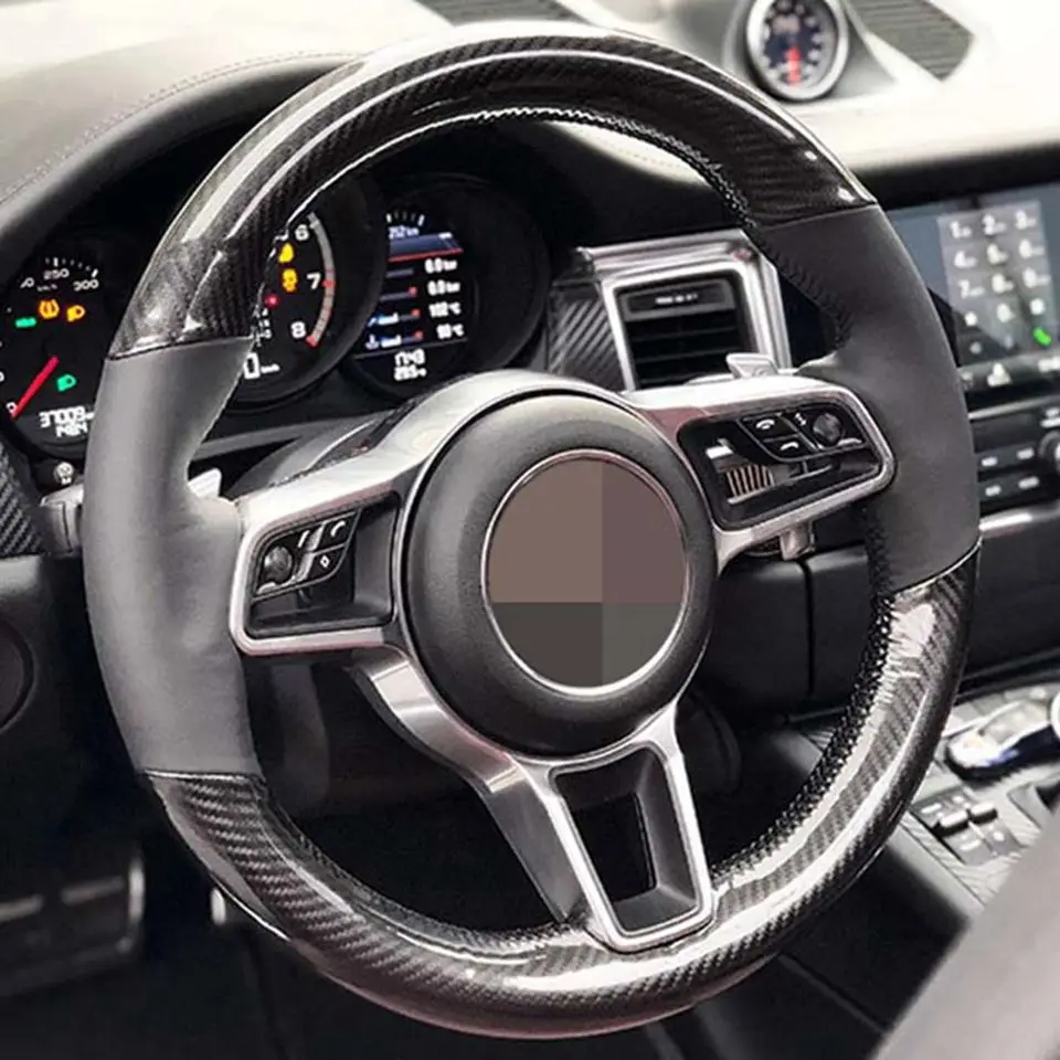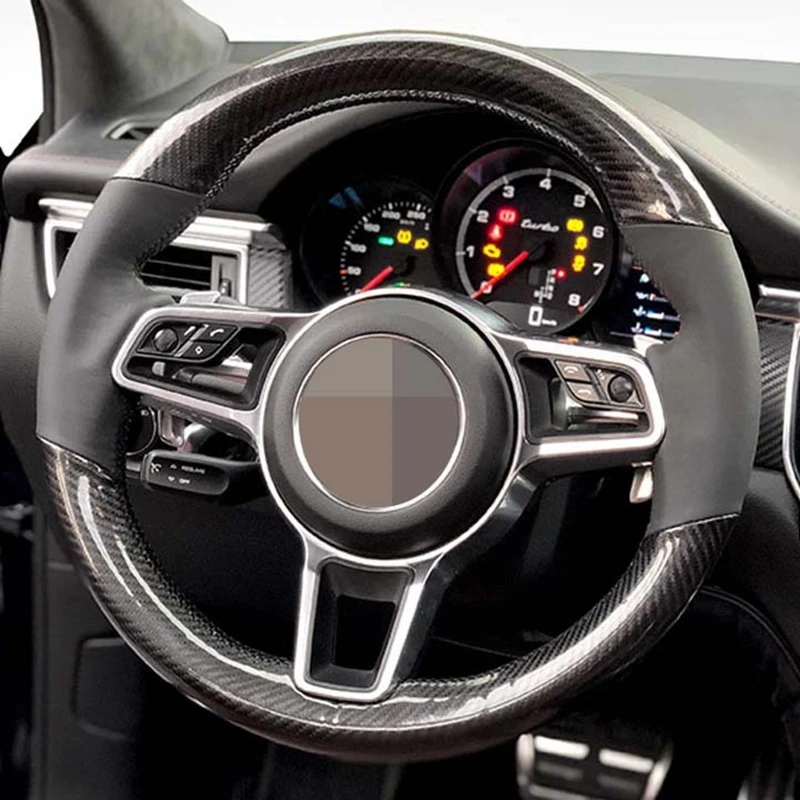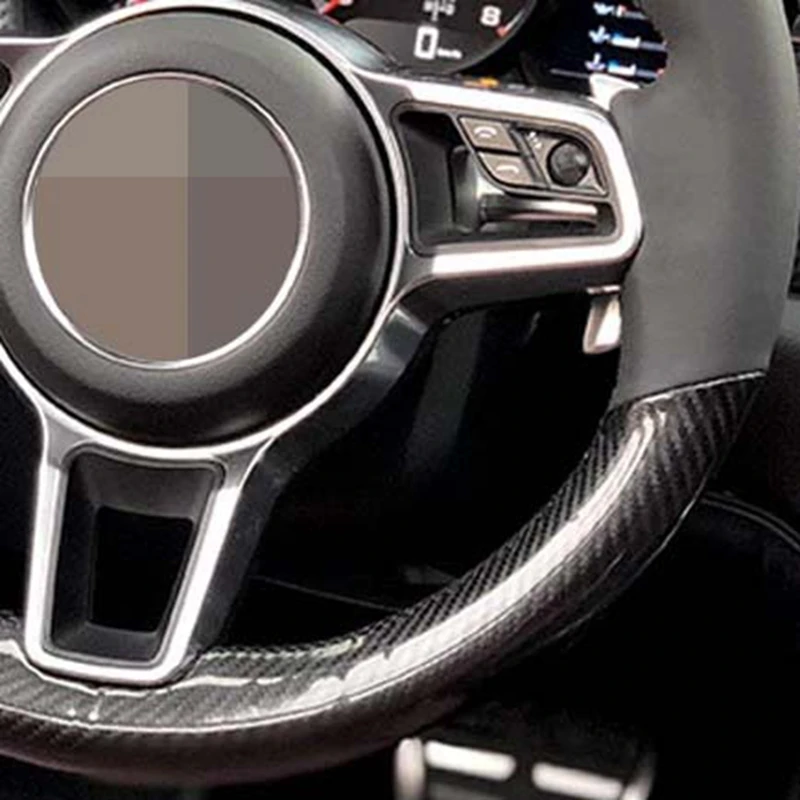 Рука сшитый Черный углеродного волокна черного цвета из натуральной кожи и замши Чехлы рулевого колеса автомобиля для Porsche Macan Boxter Cayenne 2015-2016