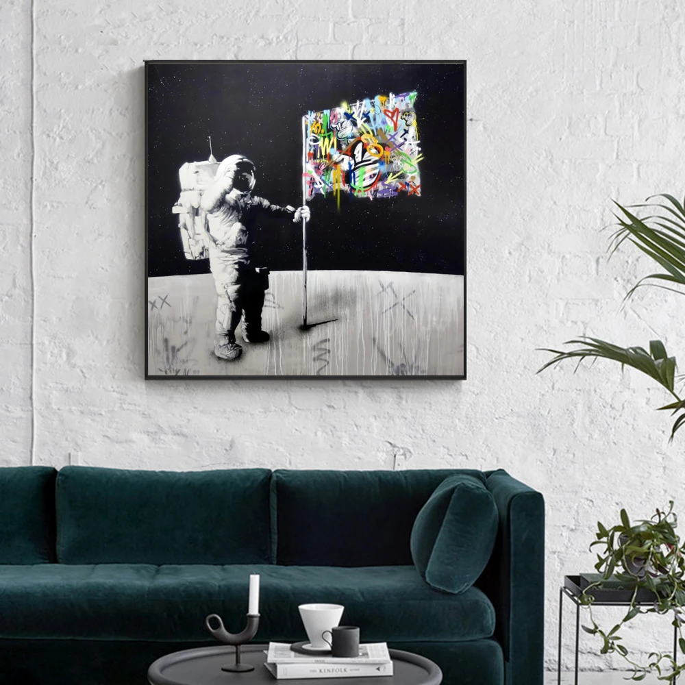 Street Griffiti Art PaintingAstronaut planted a flag on the moon Posters