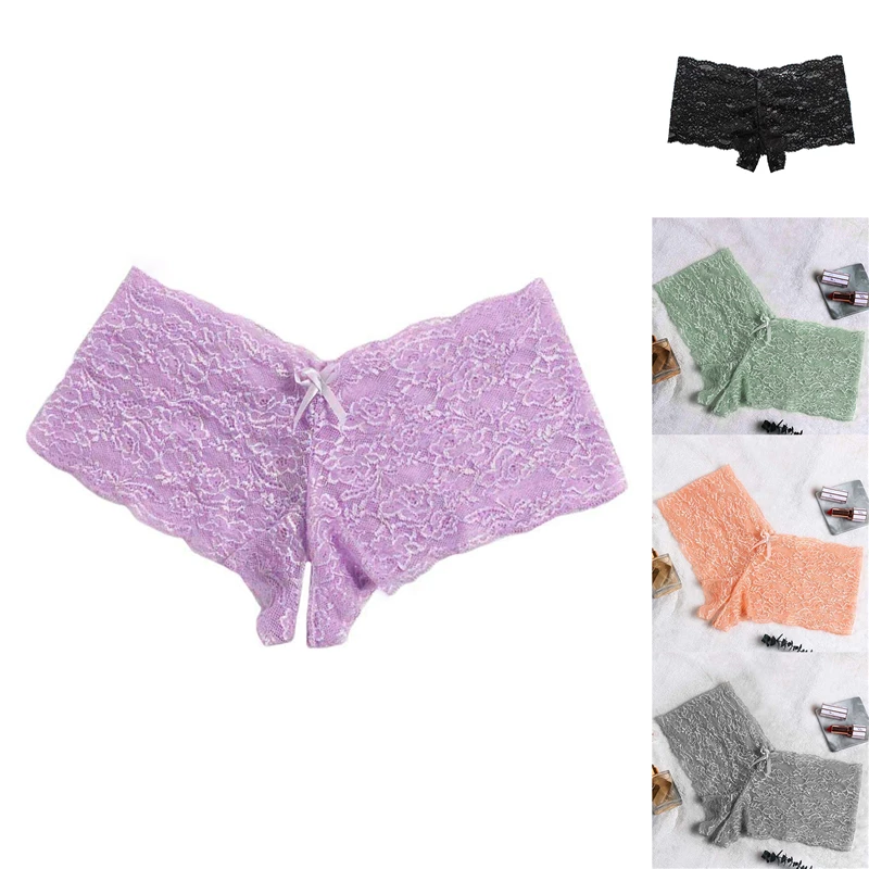1 шт. кружевные трусики Для женщин сексуальные бесшовные одноцветные Цвет Трусы Уютный Трусы прозрачная открывающаяся задняя крышка с заниженным шаговым швом, с бантом, женские трусики