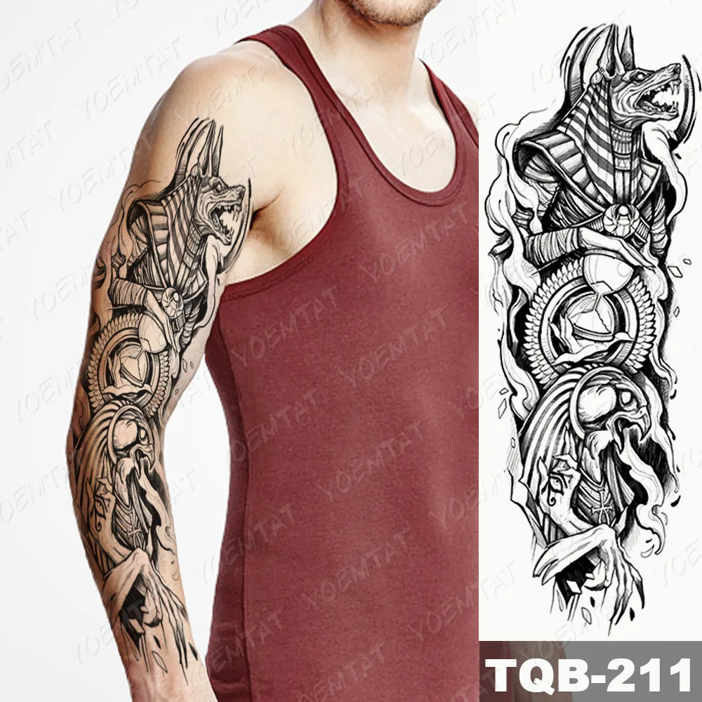 Переводные Временные Тату на всю руку Большой татуировки рукава со змеиным рисунком Медузы Водонепроницаемый временная татуировка Стикеры Посейдон Акула аквамэн трезубца для боди-арта Полный Поддельные татуировки
