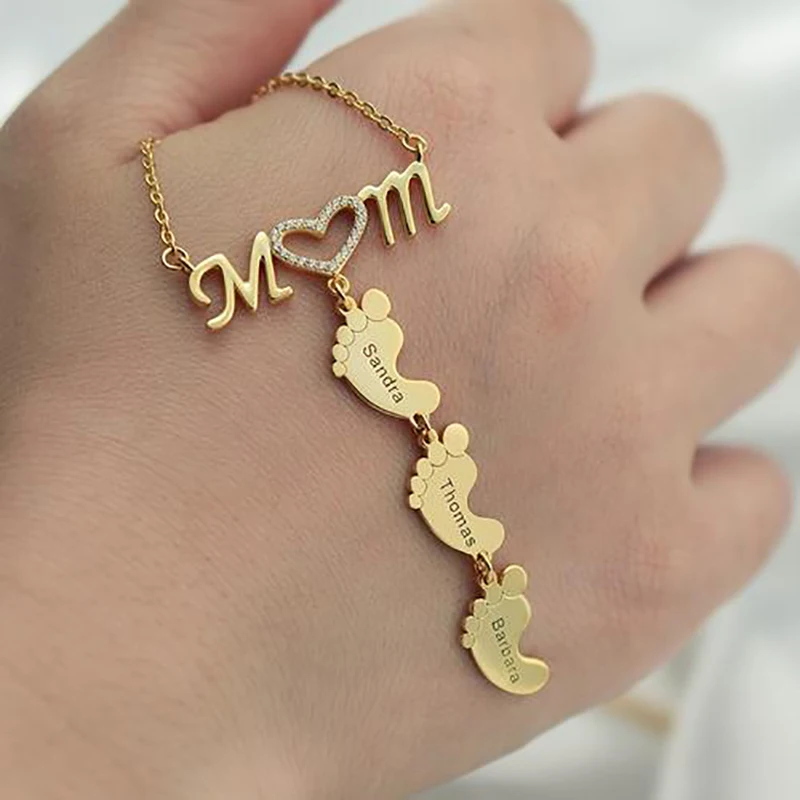 Ожерелье с именем на заказ, персонализированное ожерелье с надписью на подошве, цепочка с надписью на тему матери и ребенка, бижутерия для всей семьи, подарок на день матери