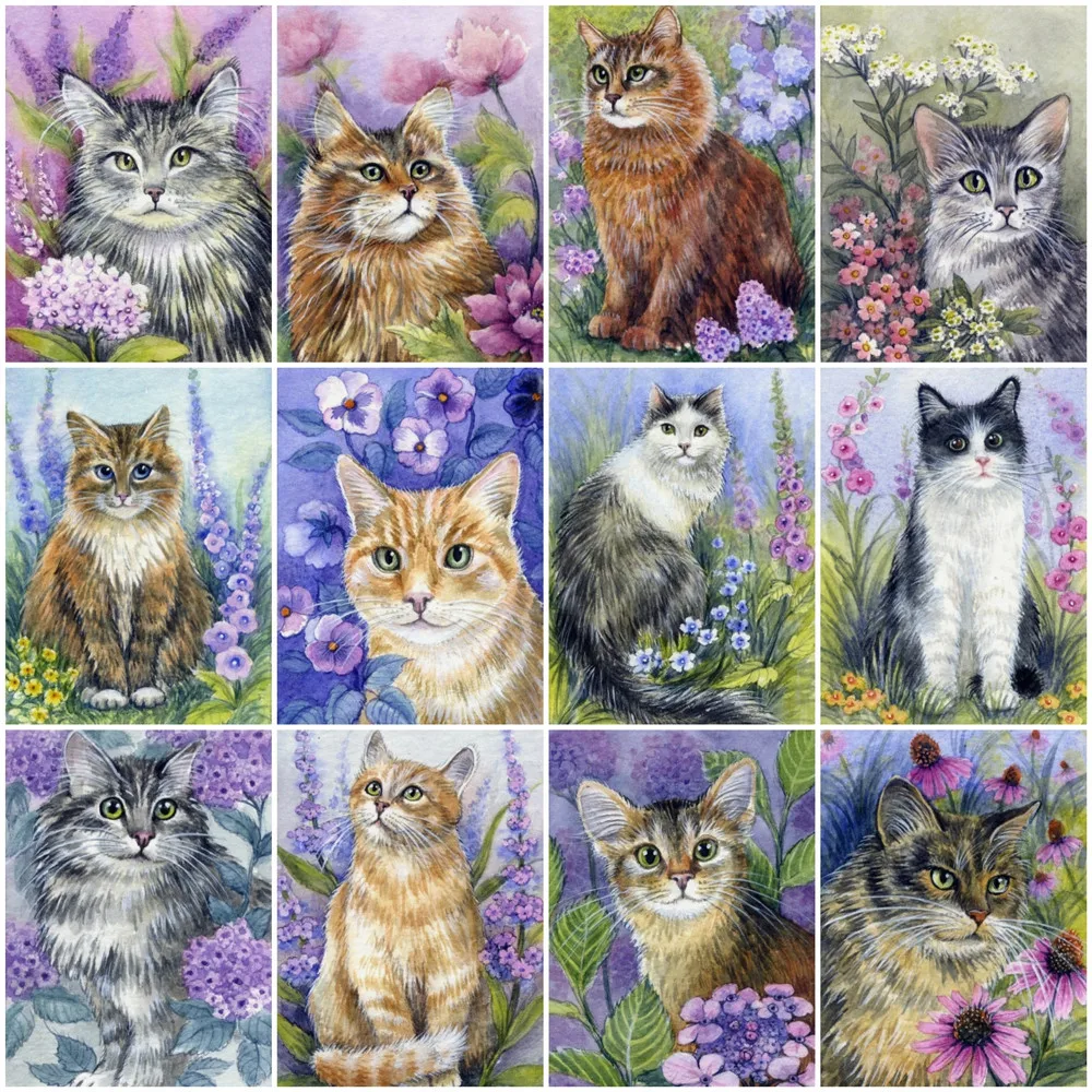 HUACAN Кот полная Алмазная картина искусство стены Декор Спальни