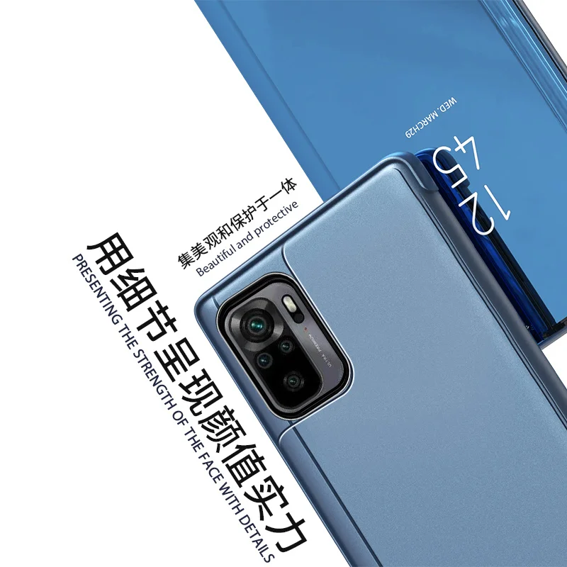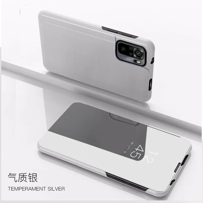 Умный зеркальный чехол из искусственной кожи для телефона Xiaomi Redmi Note 10 4G, откидной Чехол-подставка для Redmi Note 10S, защитный чехол