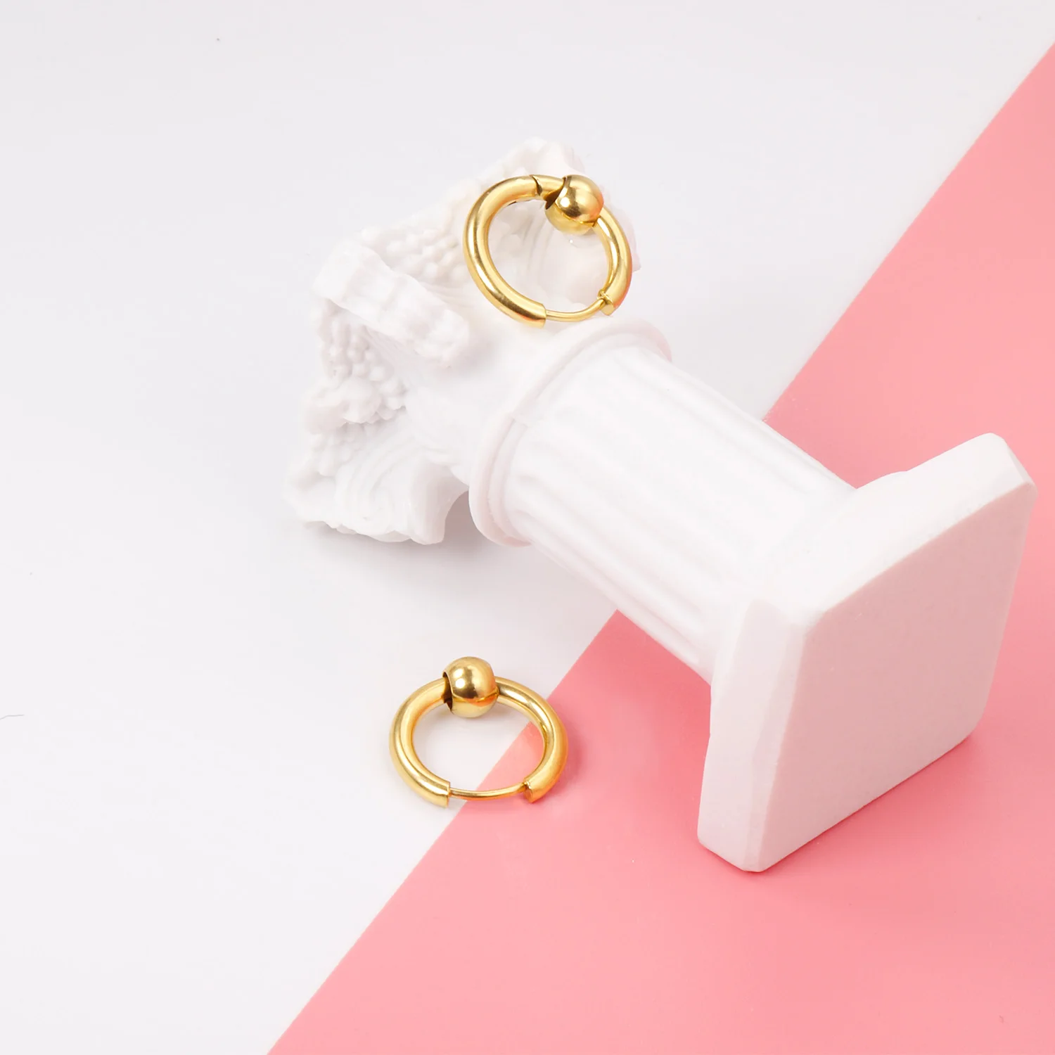 Серьги-кольца из нержавеющей стали для женщин и девушек, ювелирные изделия, ширина 2,5 мм, гипоаллергенный стальной шарик, цвет золотосеребро