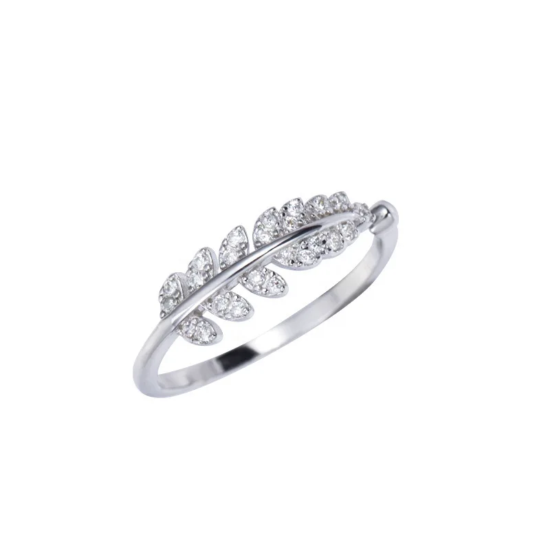 Женское кольцо с листьями и кристаллами, регулируемое кольцо с сере...