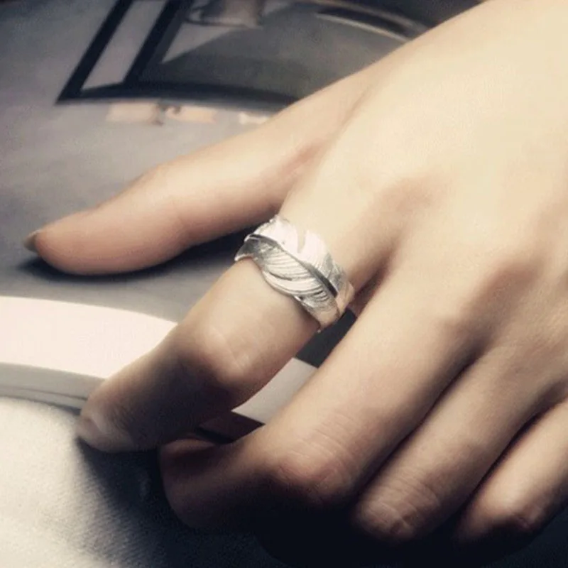 Женское кольцо с перьями, регулируемое кольцо серебристого цвета, и...