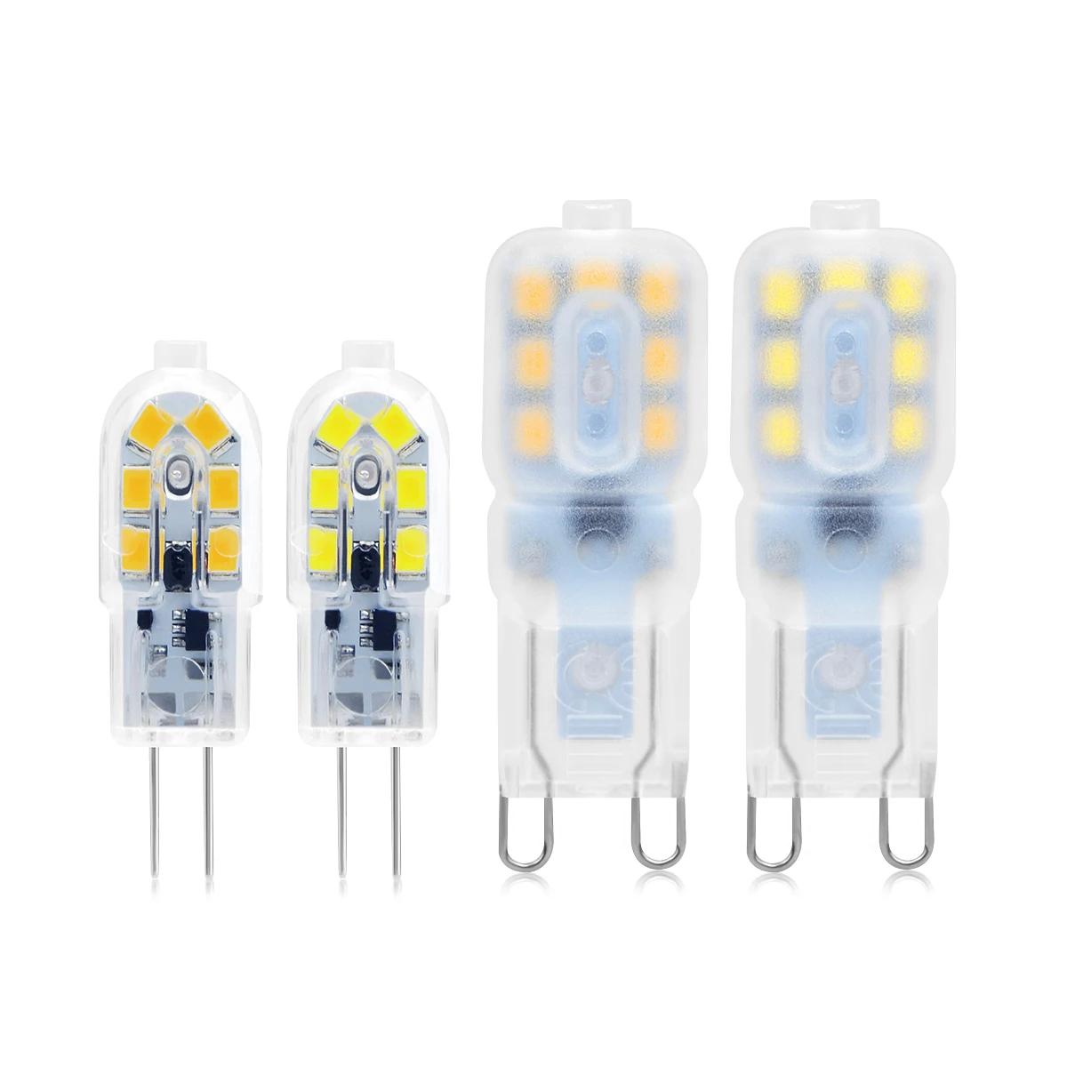 Тип цоколя: G9/G4 Мощность: G4:3W ; G9:5W Напряжение: 110 В переменного тока/220 В/12 В Светодиодный Дов: SMD2835 Количество СВЕТОДИОДНЫЙ Дов: 12 шт./14 шт. Цвет светильник: теплый белый/белый Цветовая температура: 6000-6500K (белый); 2800-3500K (теплый белый)
