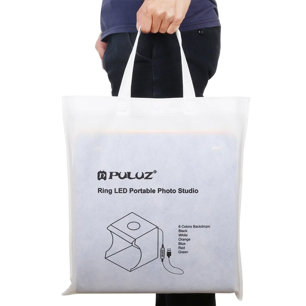 Характеристики студийного ящика1. Световой короб для фотосъемки предназначен для мелких предметов энтузиастов фотографии, ремесленников, художников, продавцов etsy и других онлайн-продавцов, профессионалов и клиентов рекламы продуктов.2. Светильник т бокс студия позволяет быстро и легко снимать мелкие продукты, такие как ювелирные изделия, аксессуары, игрушки, часы, гаджеты и другие предметы.3. Легко собирается (Используйте его после трех секунд сборки), вы можете развернуть этот светодиодный лайтбокс-студия и разместить его на любой поверхности, чтобы получить очень хороший фон для небольших предметов деловой фотографии, фотографирование продукции.4. Портативная складная конструкция, более удобная для установки и переноски, встросветильник ка, обеспечивающая средсветильник и Предотвращающая появление теней и отражений на ваших фотографиях.5. Кольцевая световая панель CRI95 с цветовой температурой, встроенная каменная зернистая ткань, хороший световой эффект.6. Быстрое хранение, хороший трехмерный эффект коробки для палатки.7. Изысканный дизайн упаковочной коробки, хороший внешний вид и элегантность.Характеристики Светодиодный1. Количество бусин: 96 шт2. Модель шарика светильника: 28353. Яркость лампы: 24-26lm4. Цветовая температура белого светильник: 5500K5. Диапазон затемнения: 1%-100%6. Регулировка затемнения: 10 режимов7. Указывает: Ra>968. Мощность: 1-10 Вт9. Напряжение: 5 В10. Размеры: внешний диаметр 200 мм11. Питание: USB порт питания12. Длина кабеля: 2 мПосылка тация:1. Основной студийный бокс (кольцесветодиодный Светодиодная панель) x 12. Мягкая сумка x 13. Черный фон из ПВХ x 14. Белый фон из ПВХ x 15. Желтый фон из ПВХ x 16. Красный фон 1 шт.7. Синий фон x 18. Зеленый фон x 1