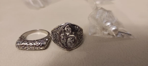 Это что-то отличное от фото, оно немного тоньше снаружи, но оно красивое, я не думаю, что это серебро 100%, однако дизайн красивый и имеет кожу, тем не менее, я рекомендую, продавец поставил пластиковые жемчужины в подарок.