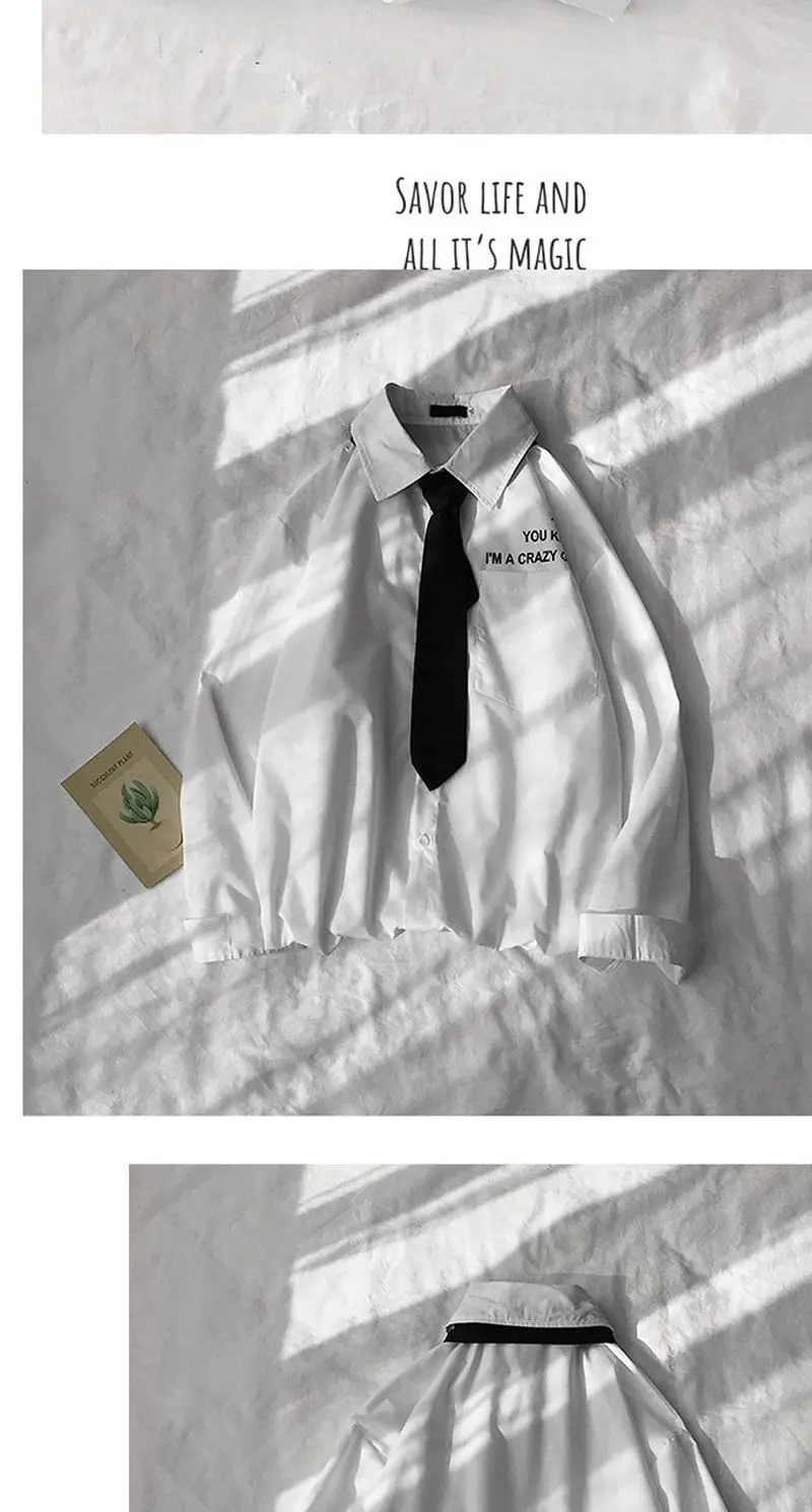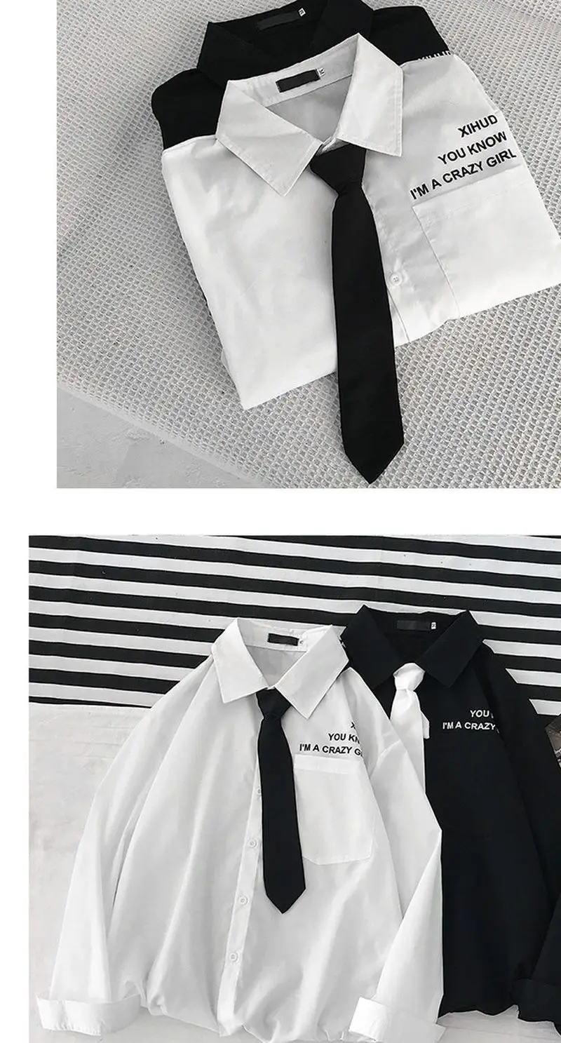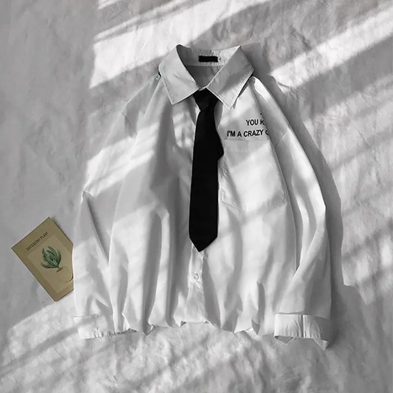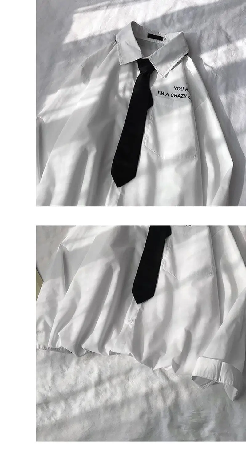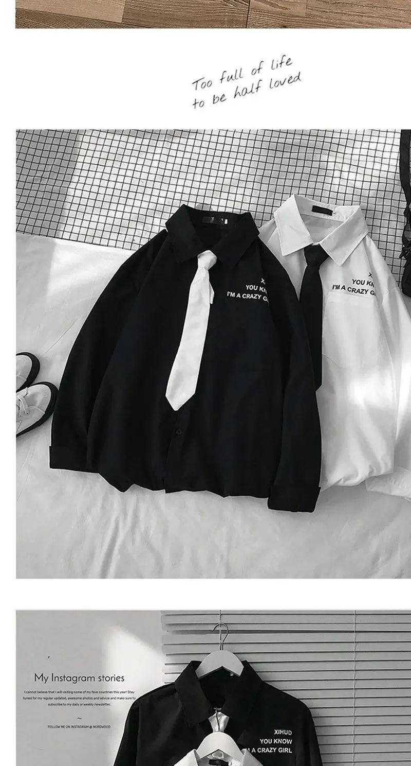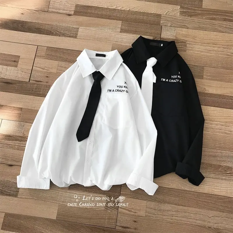Рубашка Мужскаяженская с французским галстуком, чернаябелая винтажная блузка в гонконгском стиле, уличная одежда унисекс в готическом стиле панк, весна-осень, 2021