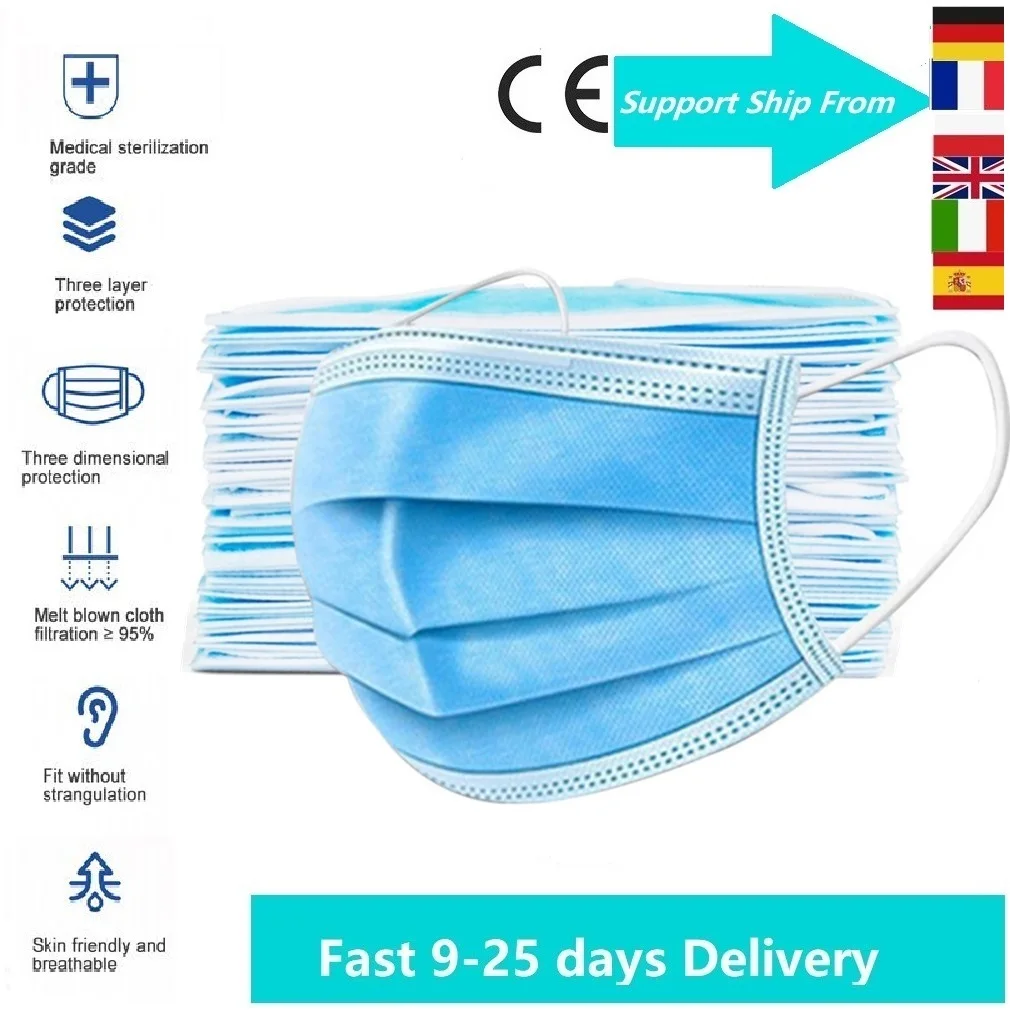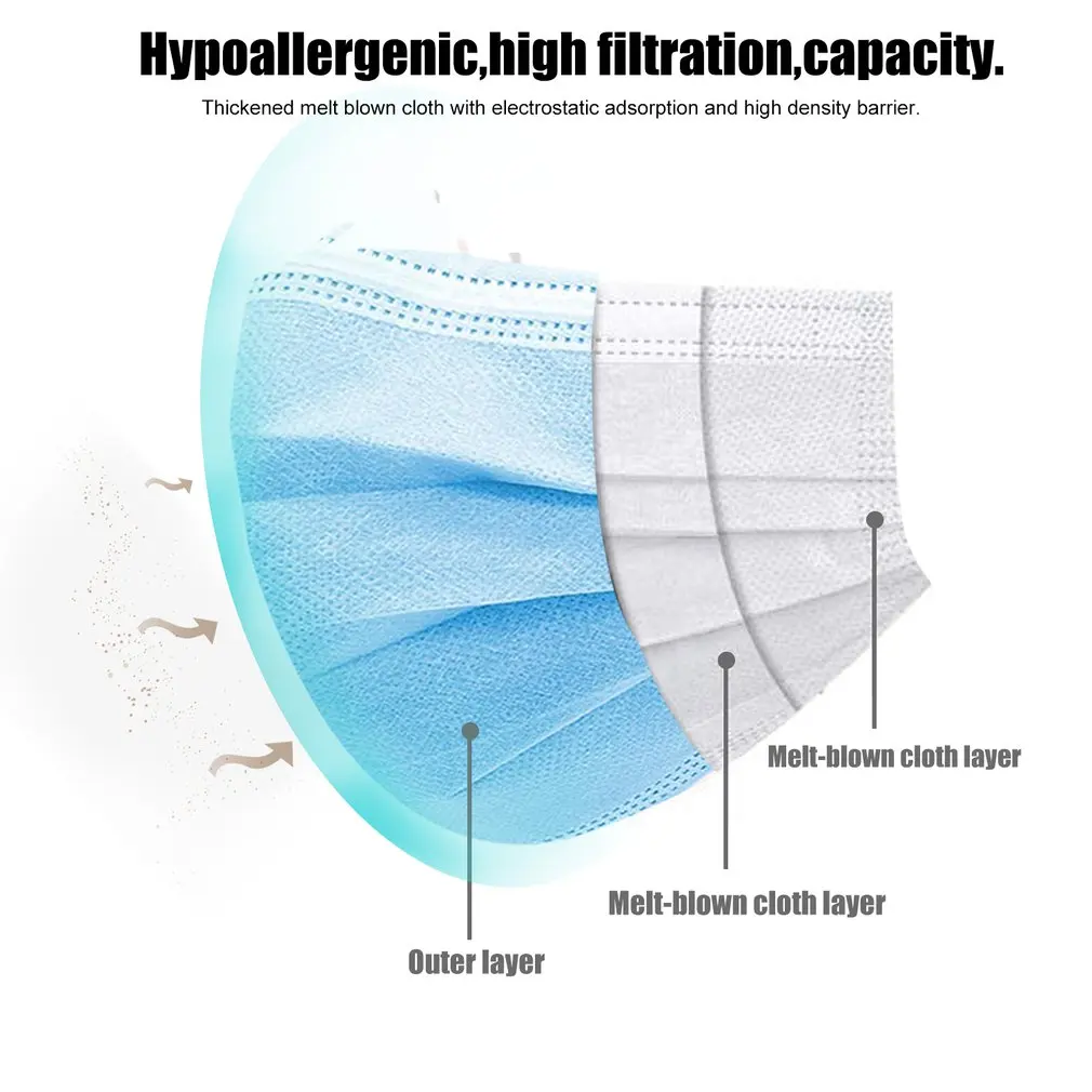 10-200 шт. одноразовые Европейским сертификатом соответствия хирургические маски медицинские маски 3-х слойные аэродинамическим способом из расплава нетканые ткани Анти-пыль Анти-бактериальная Маска цвет синий, черный; Большие размеры маска