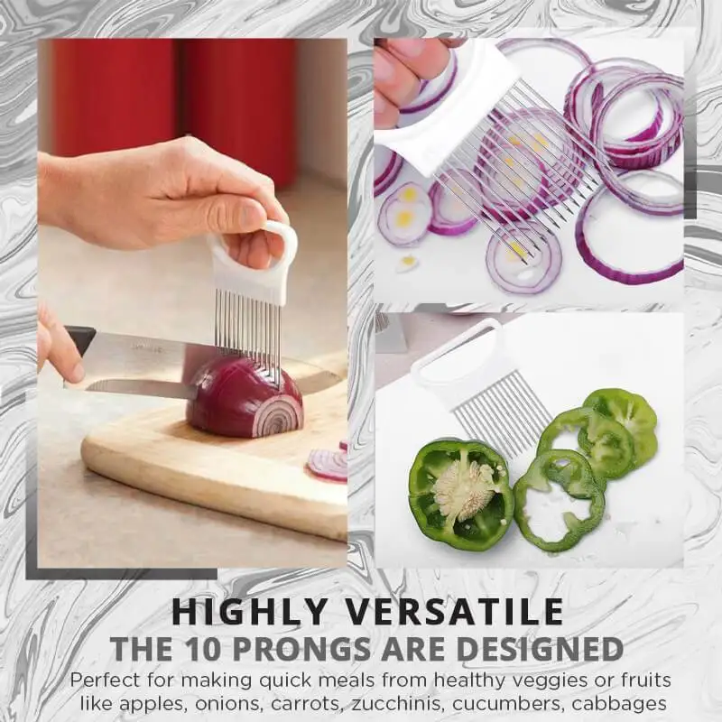 Десять зубцов:10 зубцов предназначены для приготовления разнообразных нарезов помидоров, лука, моркови, свеклы, картофеля и любого мяса или овоща. Разработан для защиты от царапин, прост в использовании, хранении и чистке.