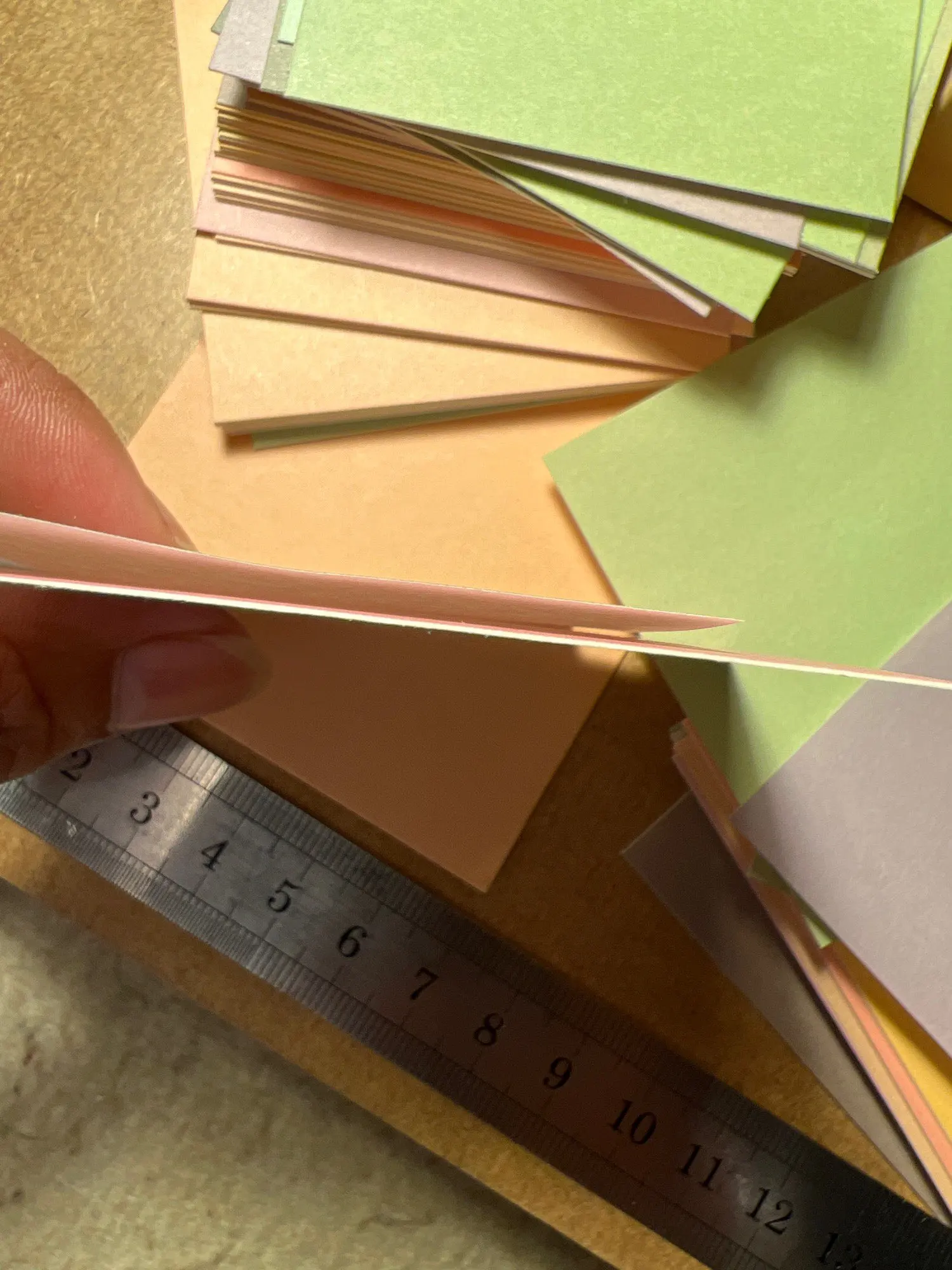 Так много хочется сказать что слов не хватает... сплошное Пииип! во-первых коробка наполовину пустая(!) см фото - там двойное дно из картона. Видимо по этой причине товар не пережил транспортировку и коробки помялись и порвались. Пришлось переложить обе пачки в менее пострадавшую, но даже с учётом этого она не оказалась полной). Листочки сами по себе не плохие, где-то 1/4 часть очень тонкие ( как газета , но не просвечивают), 3/4 - плотная бумага где-то 180-200 г/м. Цвета интересные, как на фото.
