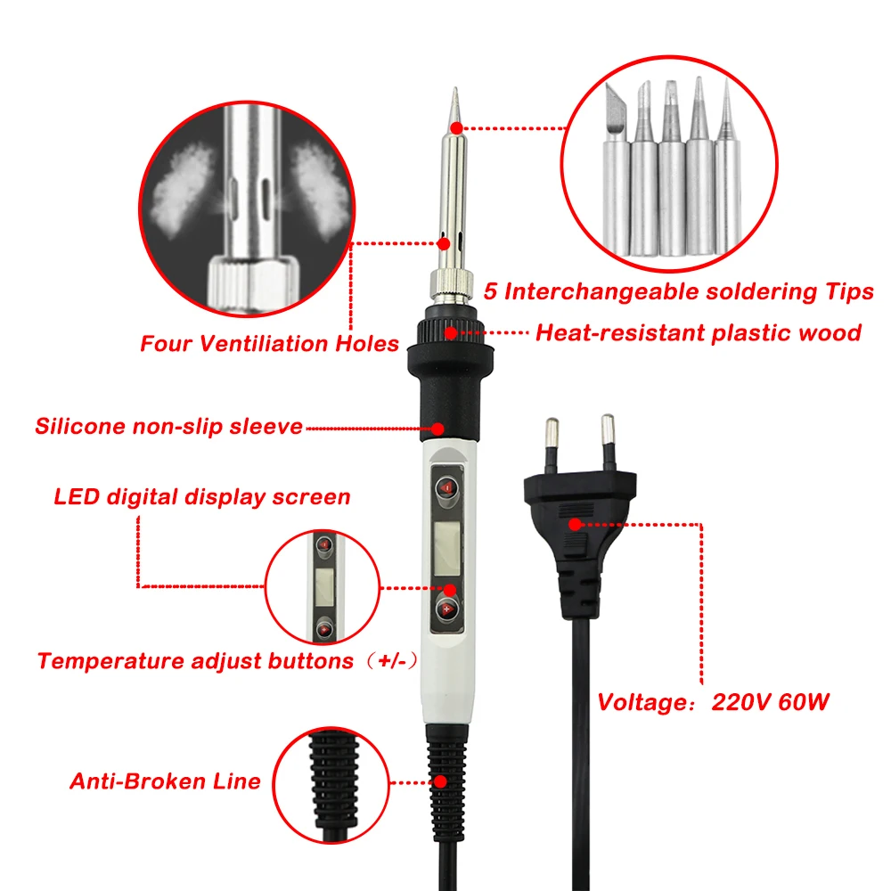 Электрический паяльник, регулируемая температура, 80 Вт, ЖК-дисплей, 220 В/110 В, набор инструментов для ремонта электроинструментов