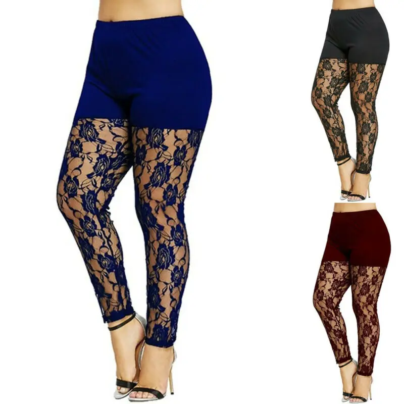 Леггинсы женские с высокой талией, облегающие кружевные брюки-карандаш с цветочным рисунком, Повседневная Домашняя одежда, размеры 4XL
