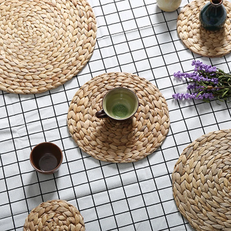 Тип: салфетки ручной работы, водо-гиацинтные салфетки, кастрюли, подставки, Нескользящие изоляционные соломенные салфетки, соломенные салфетки, реквизит для съемок