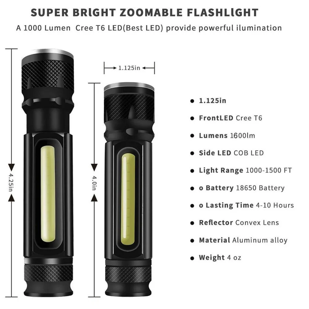 3 режима светильник и масштабируемая головка: цикл через высокий, низкий или стробоскоп с помощью одной кнопки питания, и слайд регулировки между узкий луч и светильник потока.