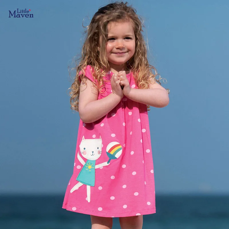 Платья для девочек; Коллекция 2021 года; Летняя детская одежда для маленьких девочек Хлопковое платье в горошек с принтом животных для малышей; Vestiods; Повседневное платье для детей; От 2 до 7 лет
