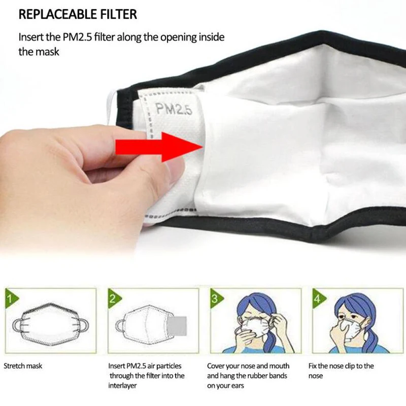 134p унисекс хлопковая маска для лица с клапаном дыхания Тканевая маска с фильтром из активированного угля многоразовая маска для лица черная маска для рта
