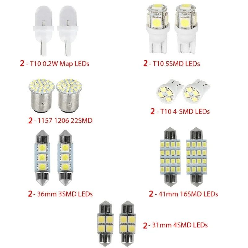 14 шт. T10 W5W смешанный интерьер автомобиля светодиодный Smd светильник лампа номерного знака светильник ПА для чтения багажник задний габаритный фонарь набор