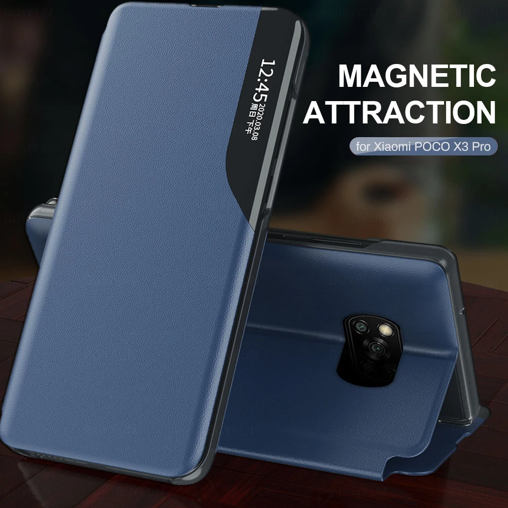 Чехол для pocox3 pro из искусственной кожи с магнитным держателем для смартфона с окошком и откидной крышкой для xiaomipocophone poco x3 pro x 3 nfc